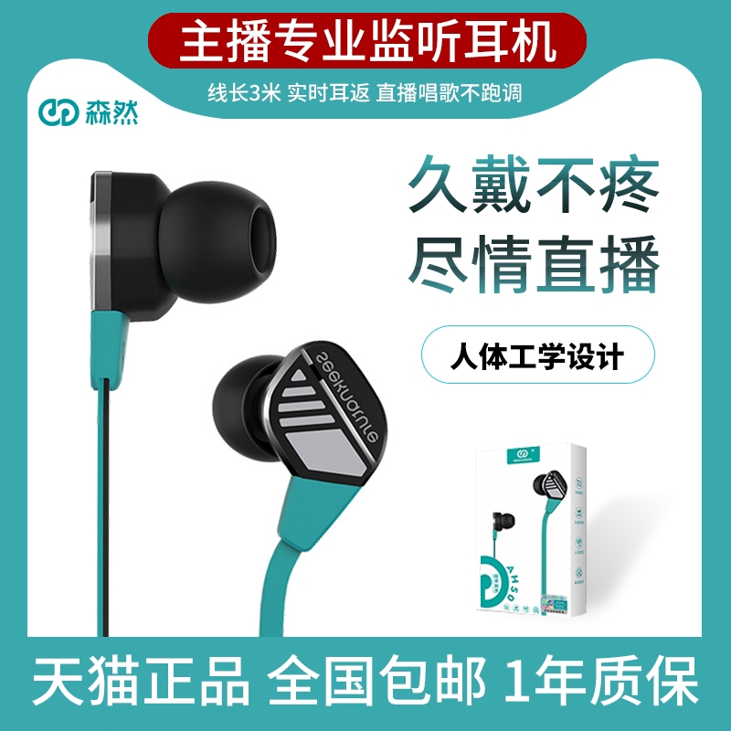 Senran AH50 net red live special monitoring headphones in-ear earplugs 3 meters long flat sound card