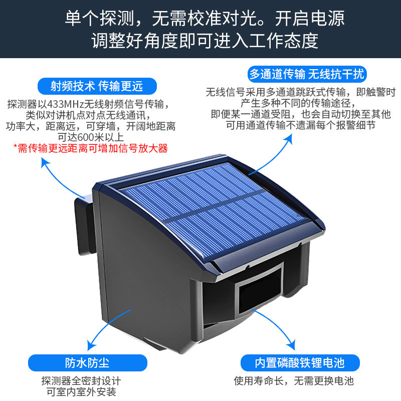 Solar infrared alarm outdoor outdoor wall remote anti-theft anti-intrusion security alarm system villa