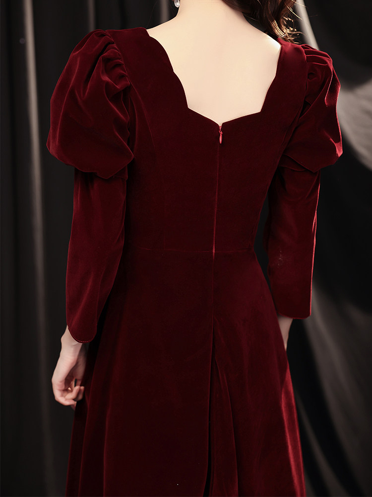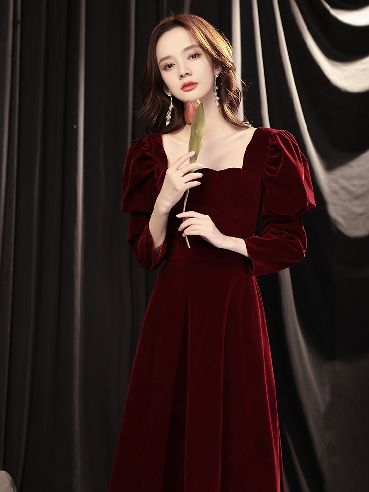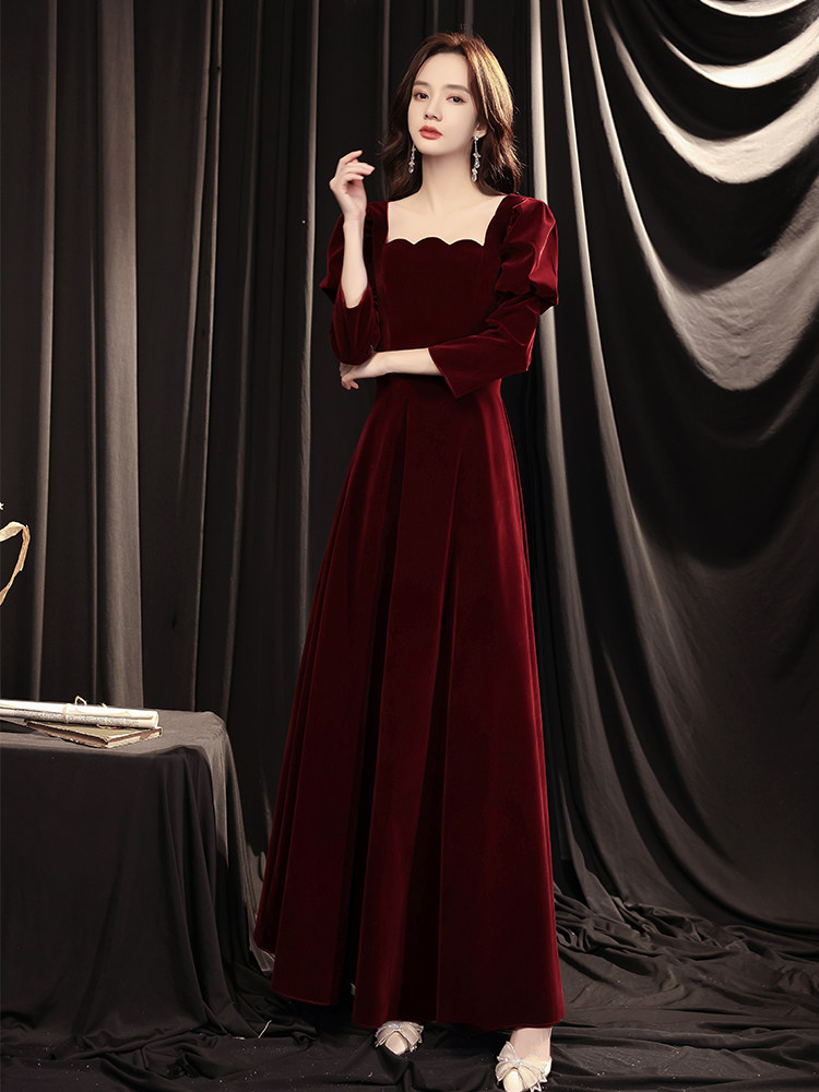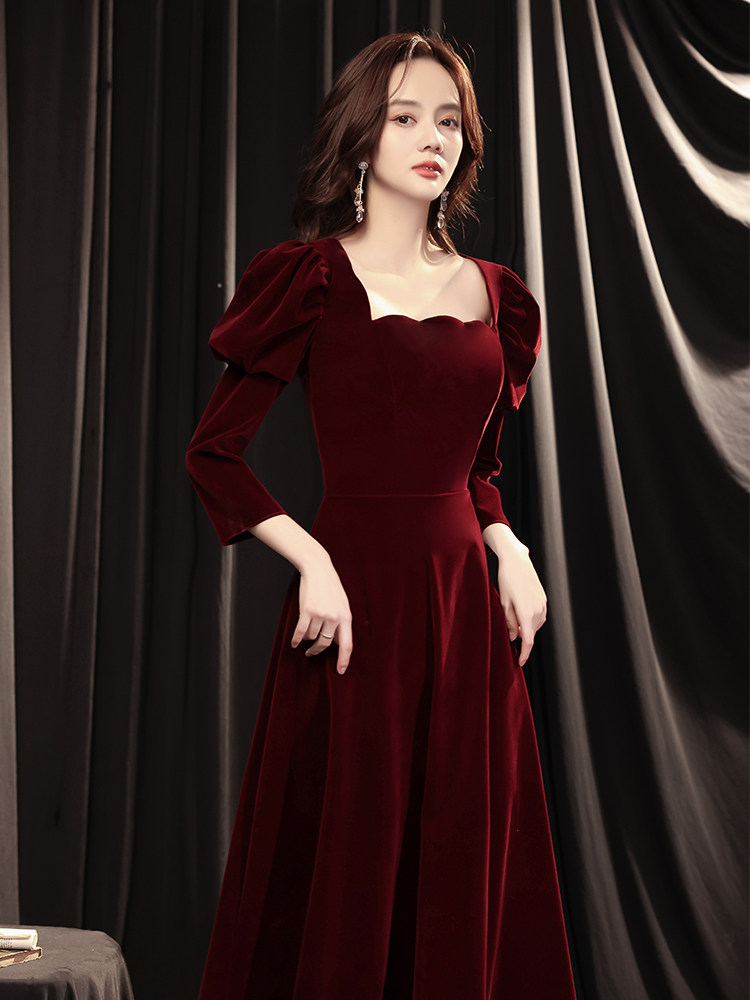 Toasting Bride Velvet 2021 New Wine Wedding Evening Dress Dress Temperament Long Sleeve Autumn Usually Wear