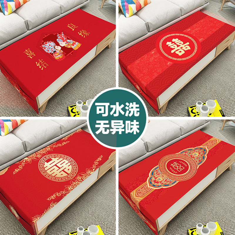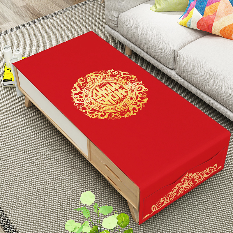 Red new Chinese festive wedding coffee table cloth cover cloth tablecloth cotton and linen waterproof tablecloth traditional wedding custom