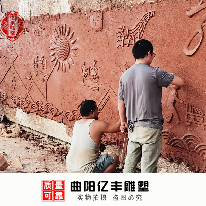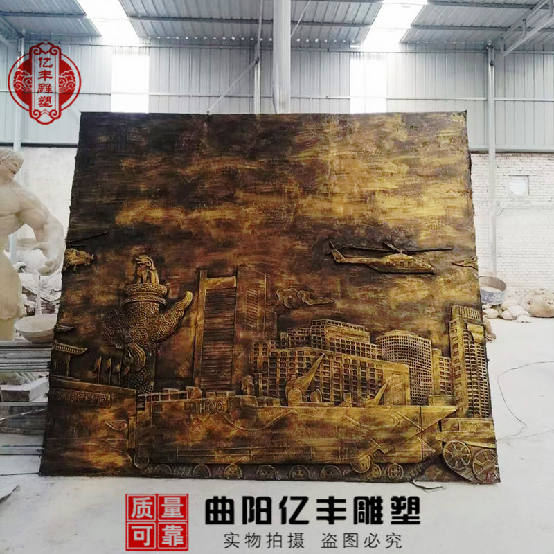 FRP imitation copper embossed sandstone background mural residential villa campus ornaments cast copper sculpture indoor and outdoor decoration