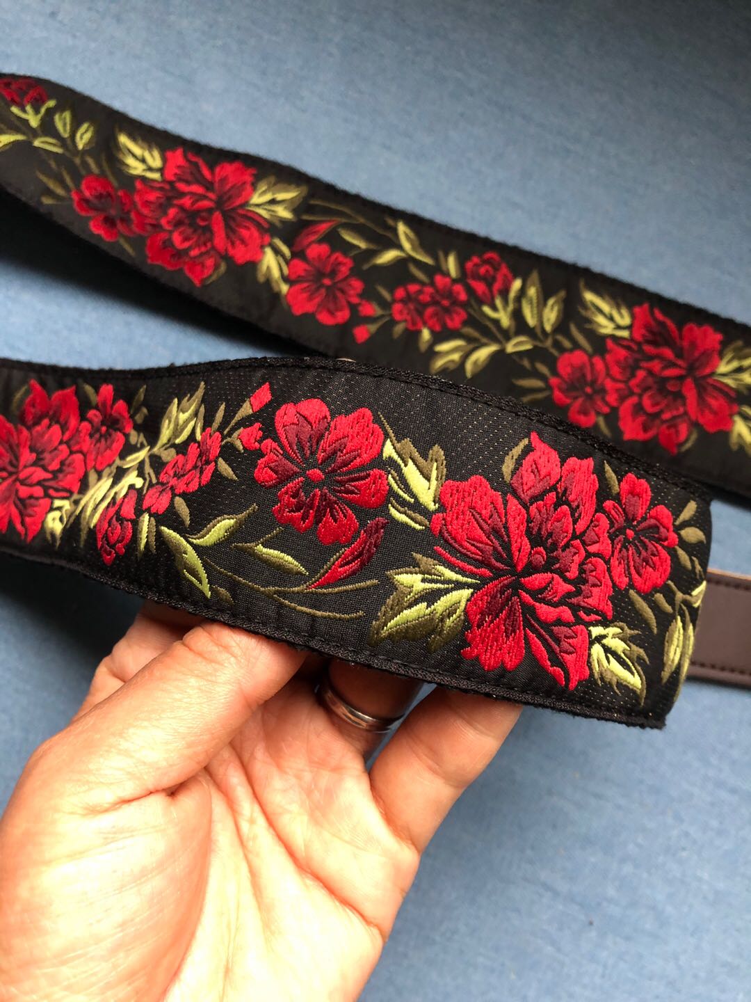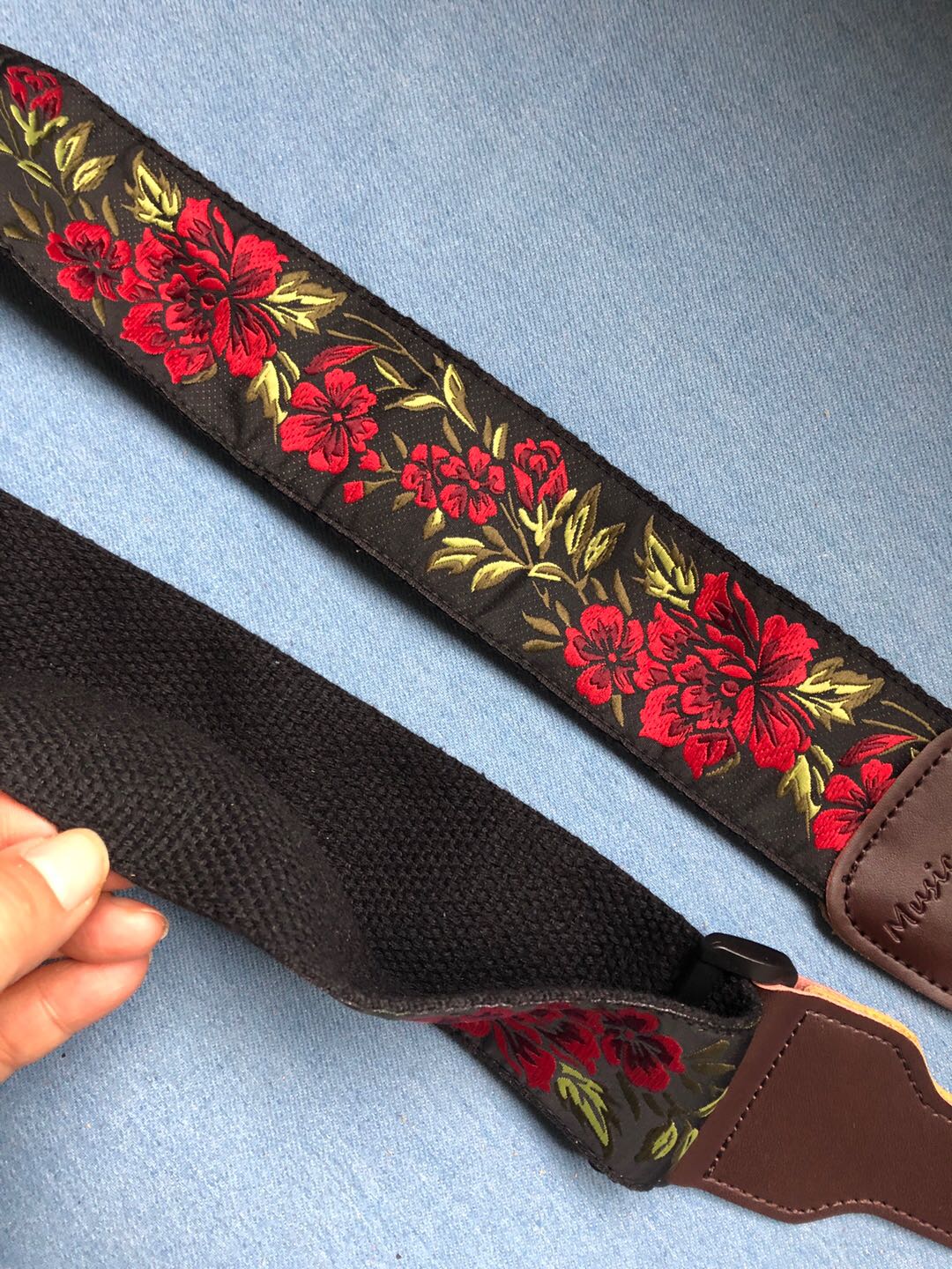 Handmade wild red rose folk guitar strap suitable for all sizes of guitar bass adjustable guitar strap