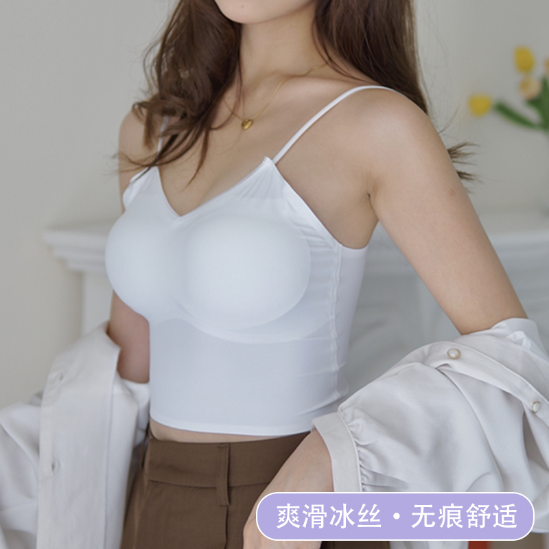 Backless underwear women's ice silk seamless tube top anti-glare sling outside wear top shoulder strap chest pad wrap chest thin summer