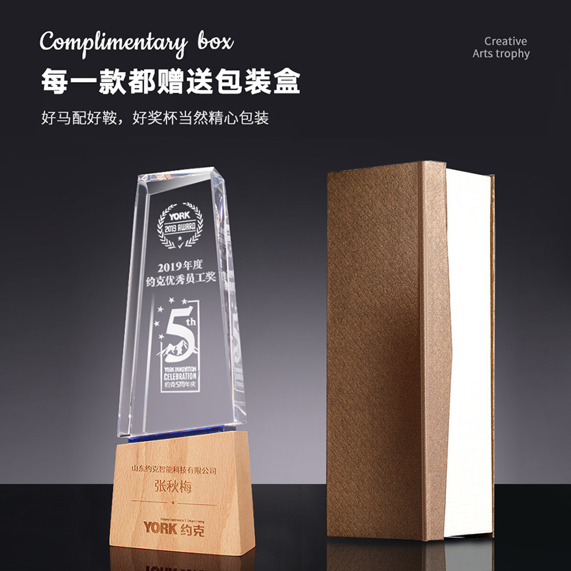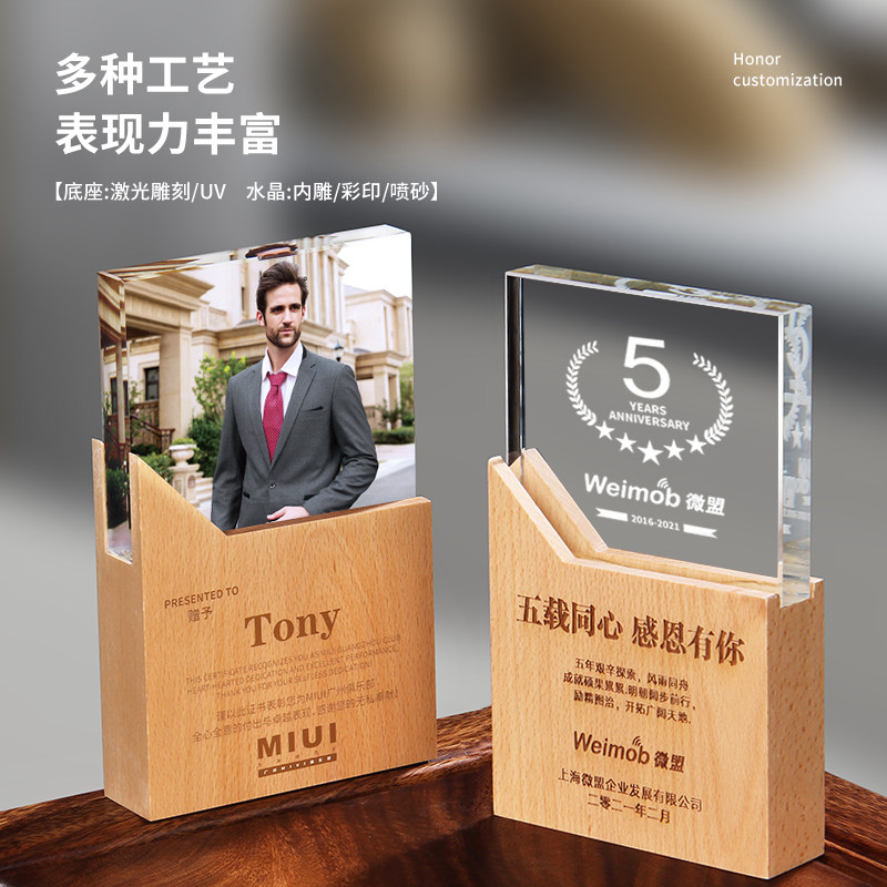 Crystal Trophy Custom Authorization Card Honor Plaque Outstanding Employees Awards Creative Solid Wood Medals for 2021