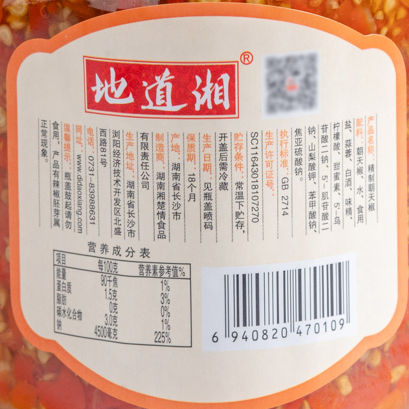 Chaotian pepper, water, edible salt, minced garlic, white wine, monosodium glutamate, citric acid, etc.