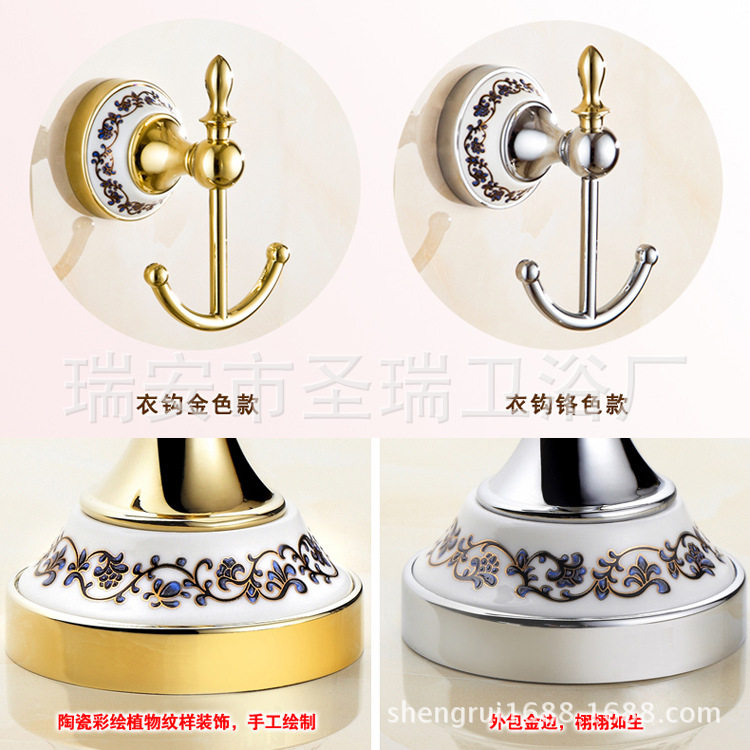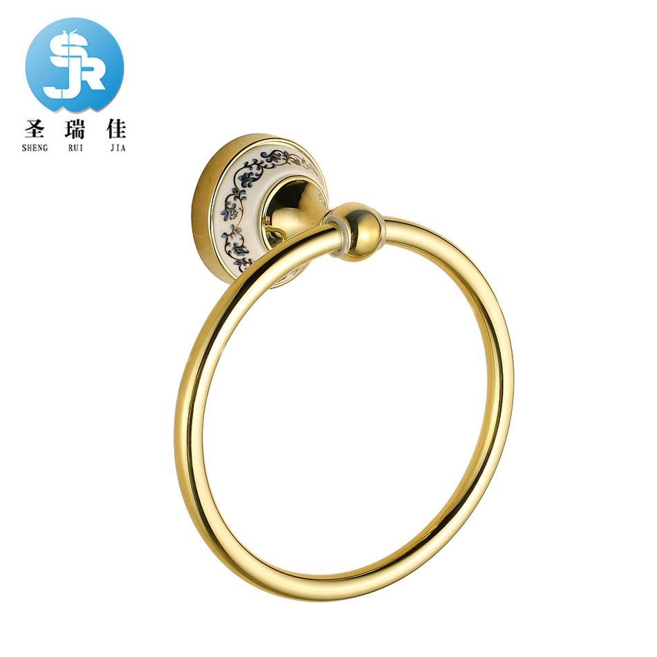 Shengruijia bathroom hardware pendant gold-plated blue and white porcelain towel hanger stainless steel ring ceramic towel ring