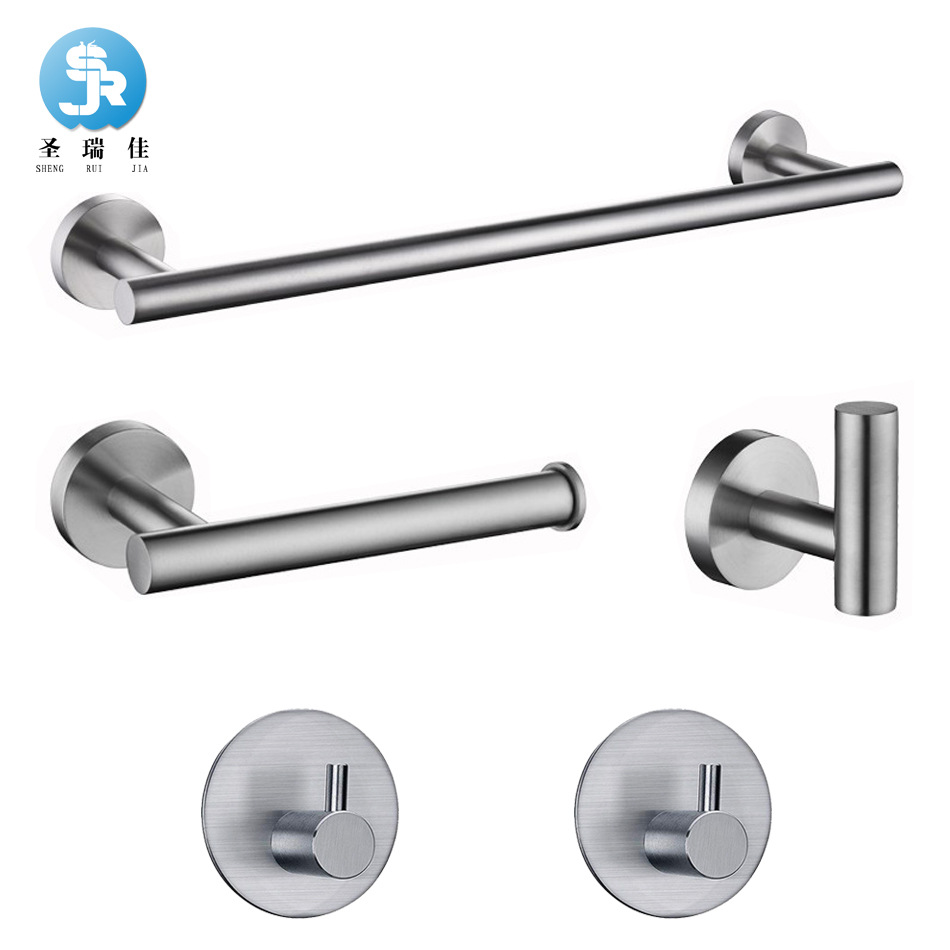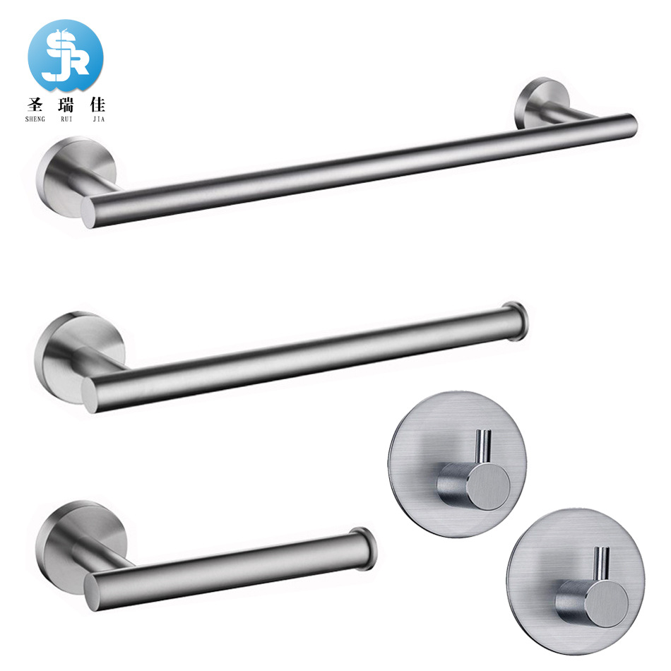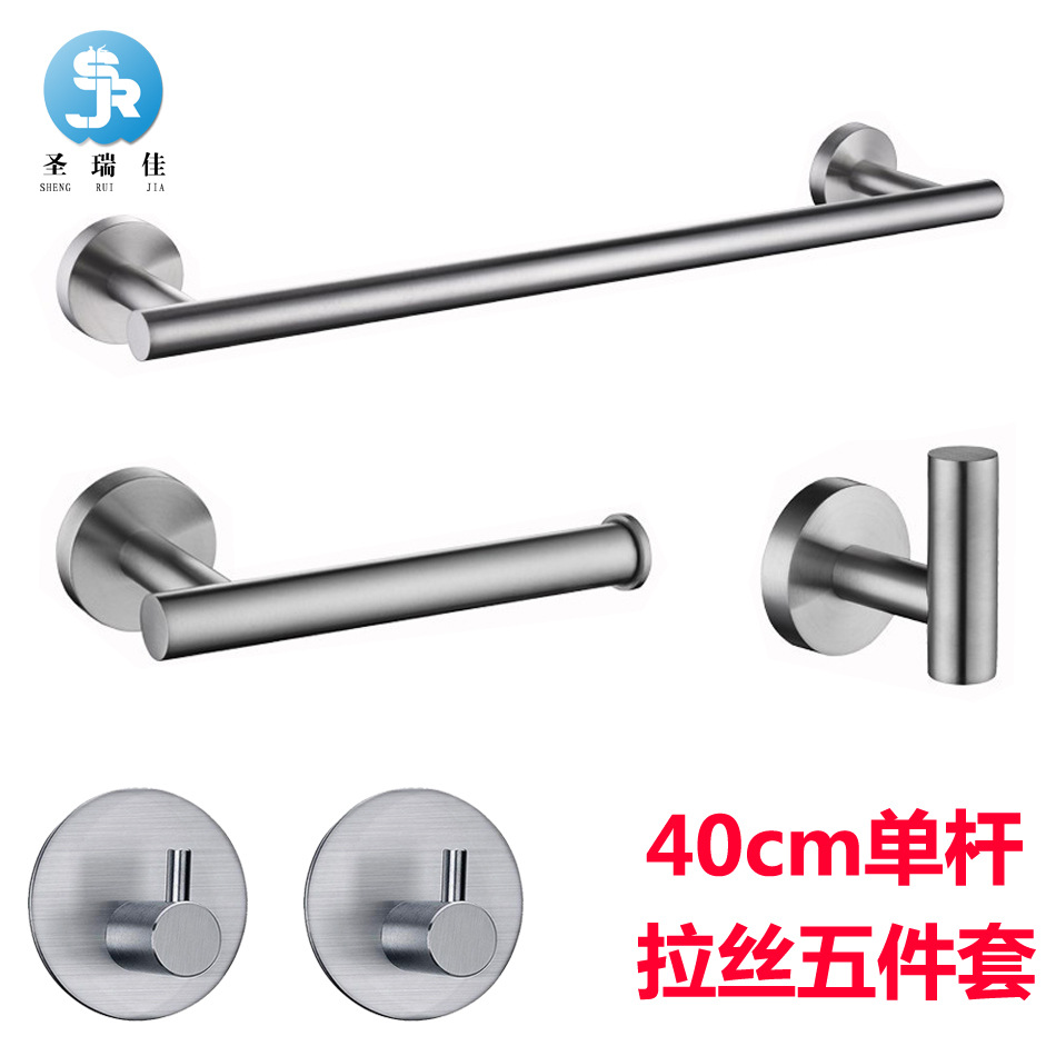 Sacred Jujia 304 Stainless Steel Wire Drawing Towel Rack Bathroom Accessories Five Pieces Suit Toilet Paper Rack Hardware Pendant Ring