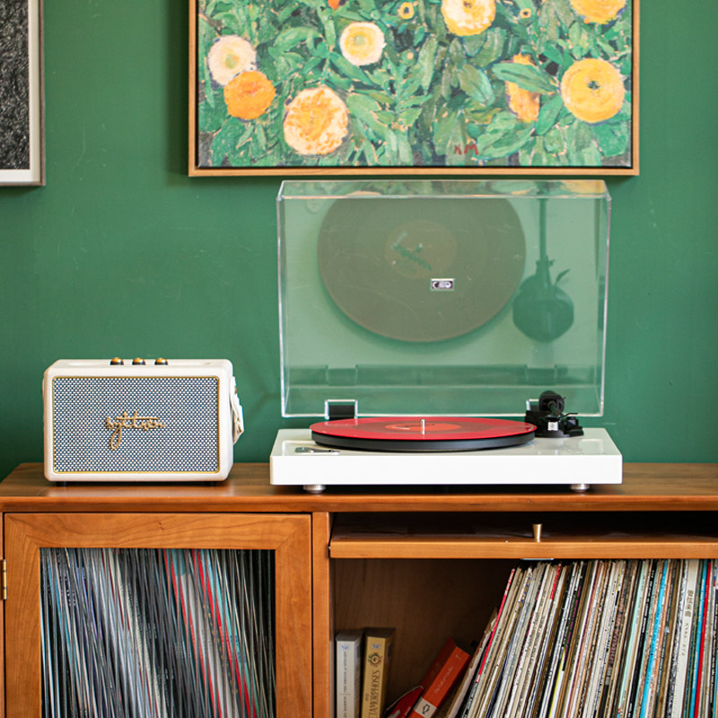 Aunets X60 Bluetooth vinyl record player BT desktop European retro modern moving magnetic white wooden phonograph
