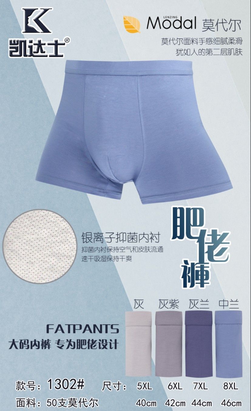 Men's plus fertilizer to increase fat men's pants 50 Lenzing Modal silver ion breathable inner gear anti-wear legs 1302
