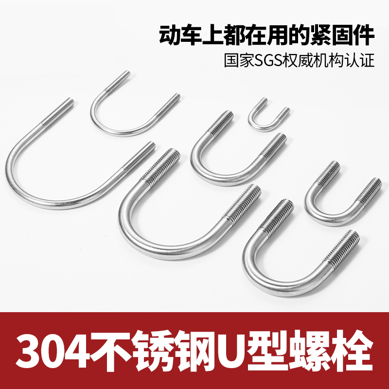 304 stainless steel U-shaped screw U type bolt U type pipe clamp U type pipe clamp U type pipe holder stirrup M10 full series