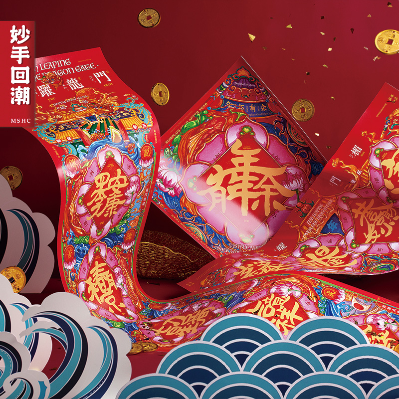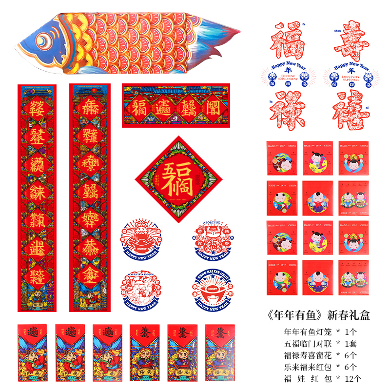 Every year there are fish - red and green golden dragon - five blessings Every year there are fish - red and green golden dragon - gantry Every year there are fish - red and blue koi - five blessings Every year there are fish - red and blue koi - gantry
