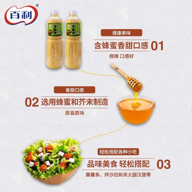 Baileys Honey Mustard Salad Sauce Fruits and Vegetables 1 5L*6 Bottles Salad Sauce Barbecue Hot Pot Sushi Light Food