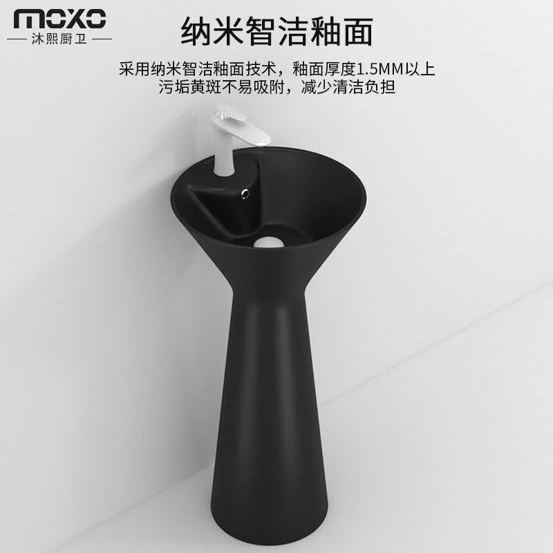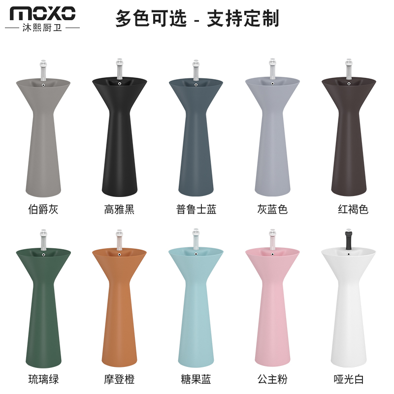 Color washbasin Black round column basin Nordic landed type washbasin hotel Makeup Room Integrated Column Basin