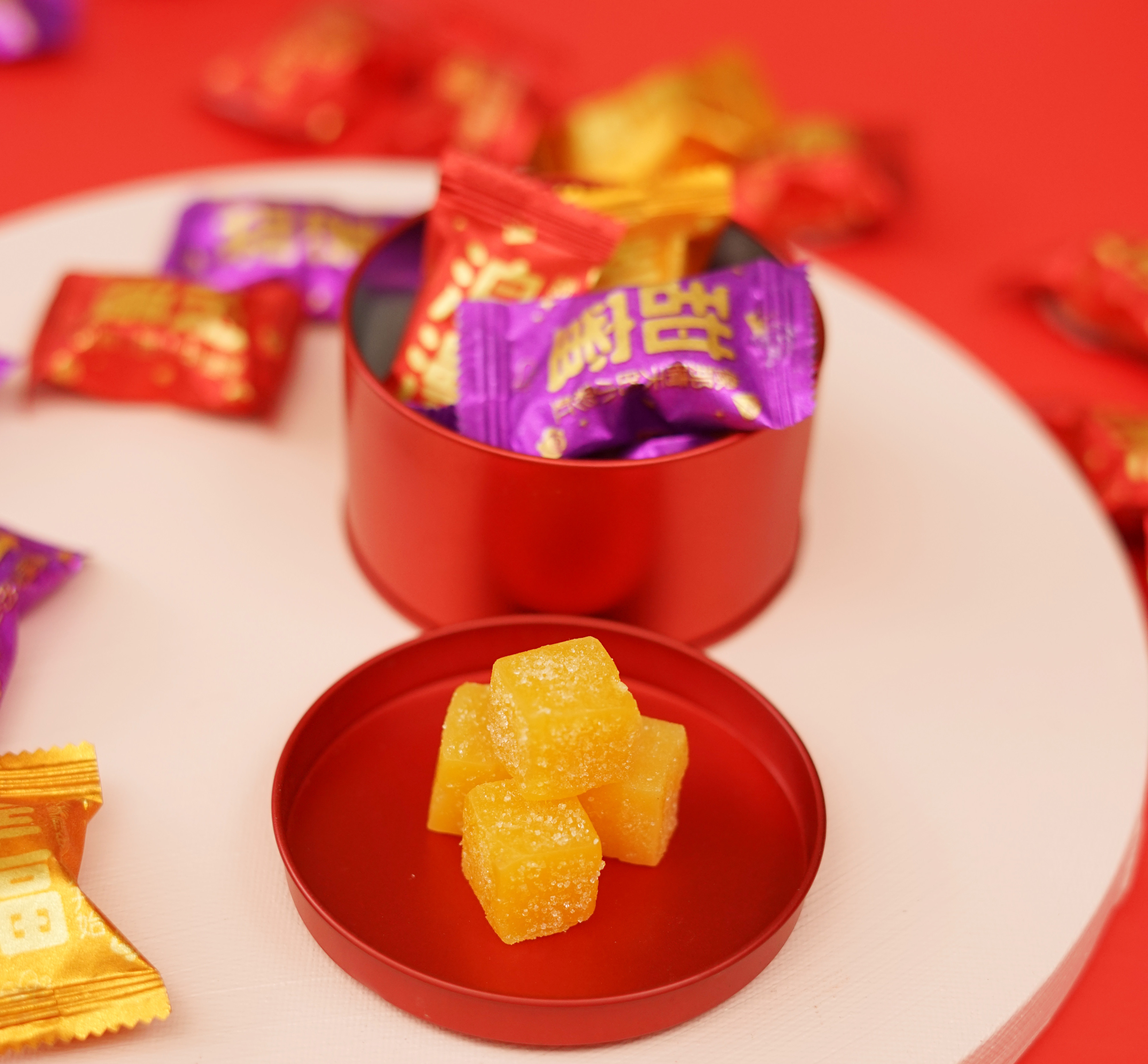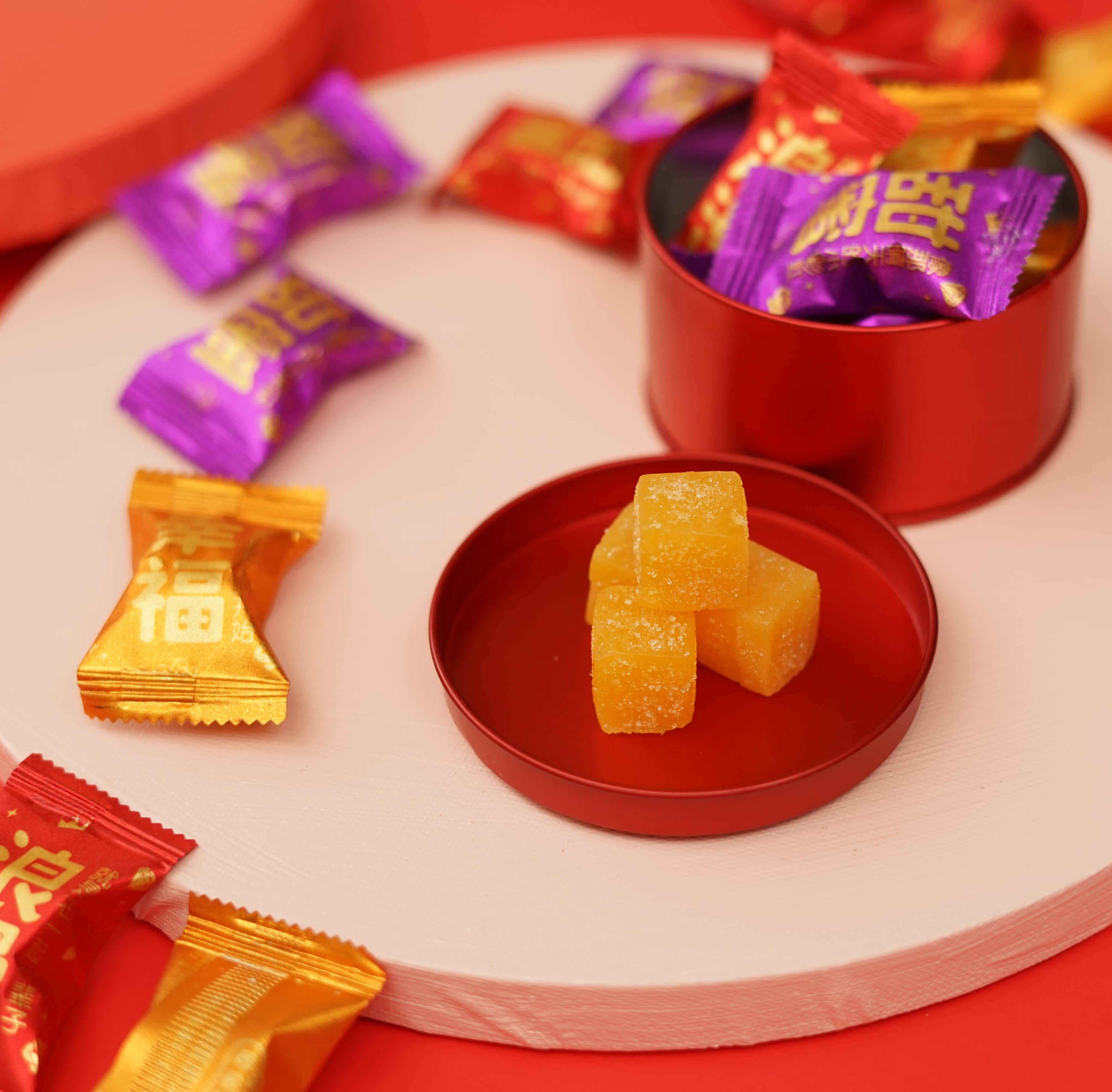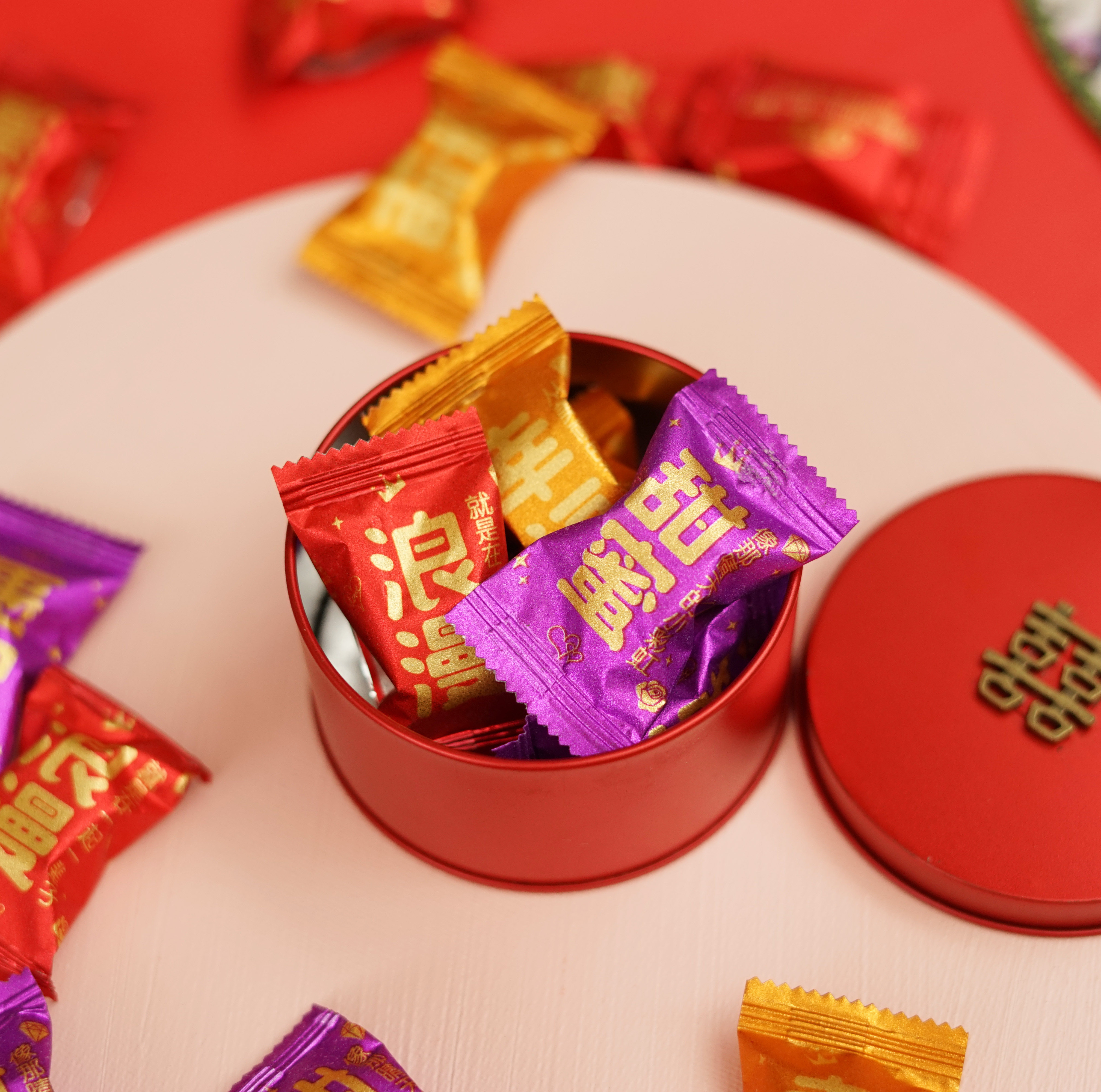 Mango-flavored fudge juice-flavored fruit candy wedding candy red purple gold three-color creative high-end wedding