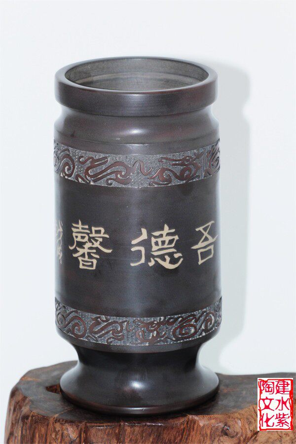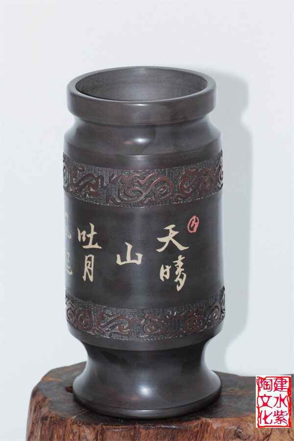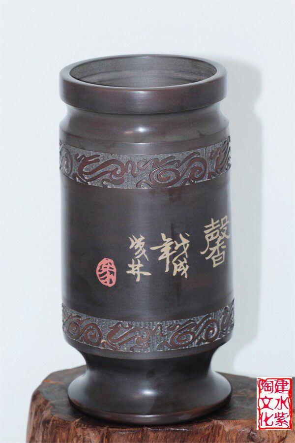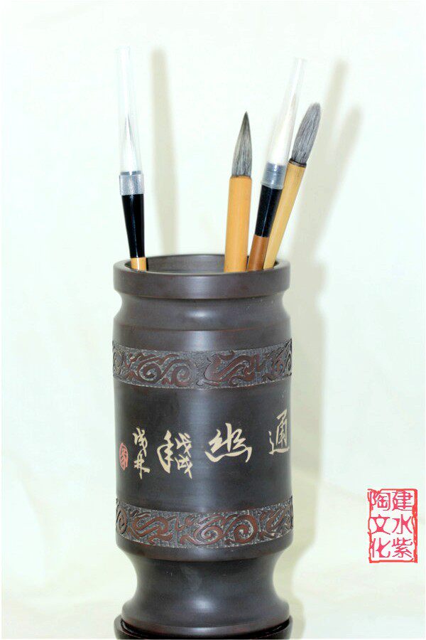 Chinese ceramic art master Jianshui purple pottery Ma Chenglin classic bronze style purple pottery pen holder cultural heirloom Wenwan