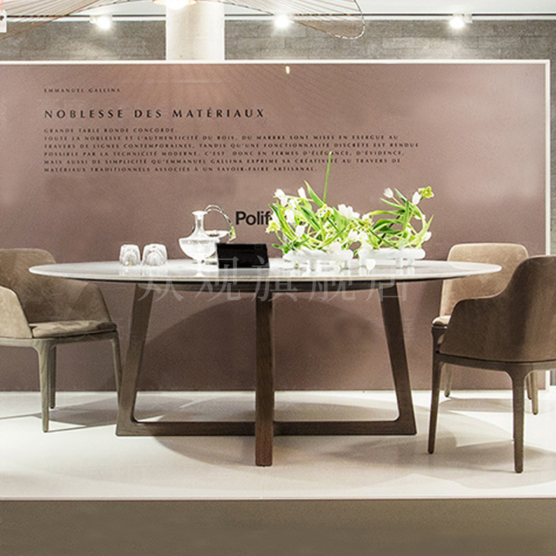 Crowd view New Chinese full solid wood table hotel clubhouse Dining Room Table Modern Light Lavish Marble Turntable Round Table