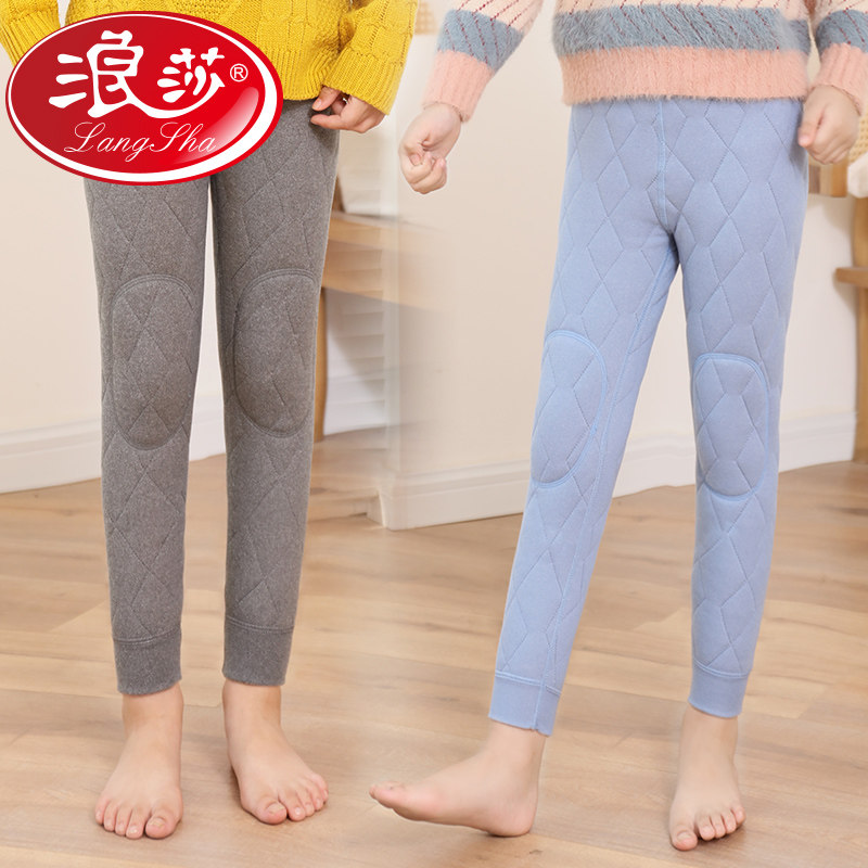 Langsha girls wear velvet thick warm pants autumn and winter children's knee pads baby hygiene pants wool inner pants cotton pants
