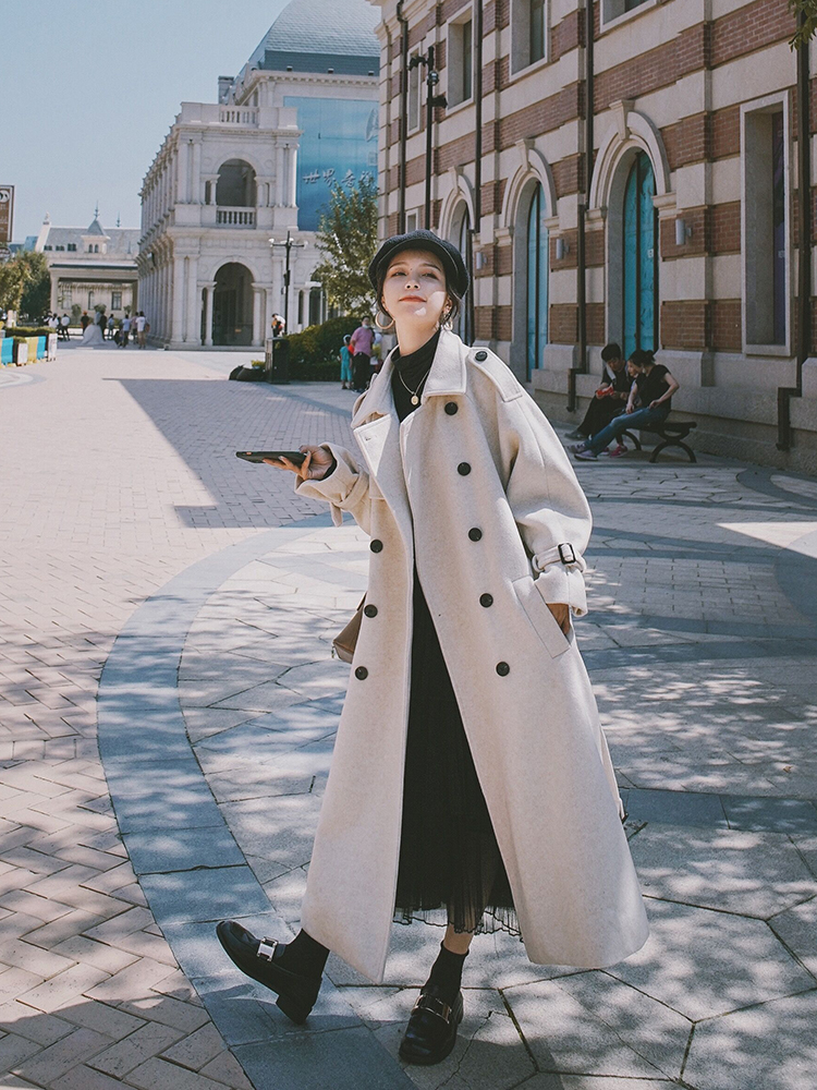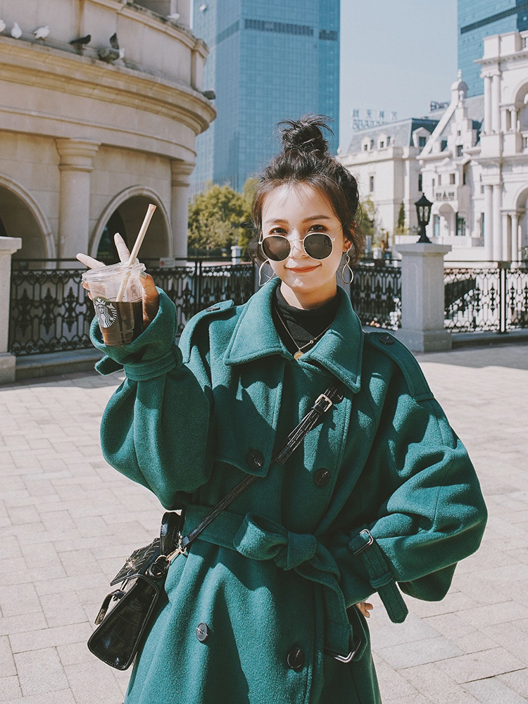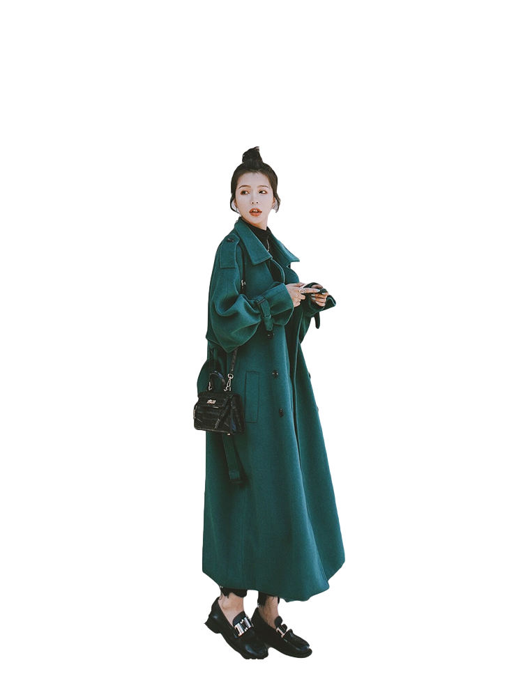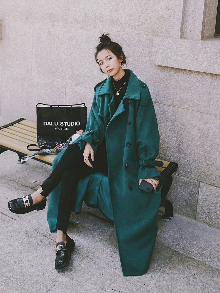 Lecea Alice Mao's coat daughter 2022 Winter new loose over knee long version Ink green cashmere Grand coat