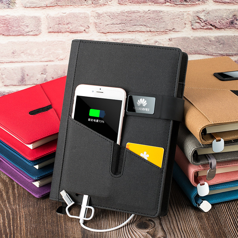 Practical gift custom business meeting office multi-function power notepad creative A5 loose-leaf book detachable notebook gift box set with mobile charging can print logo free lettering