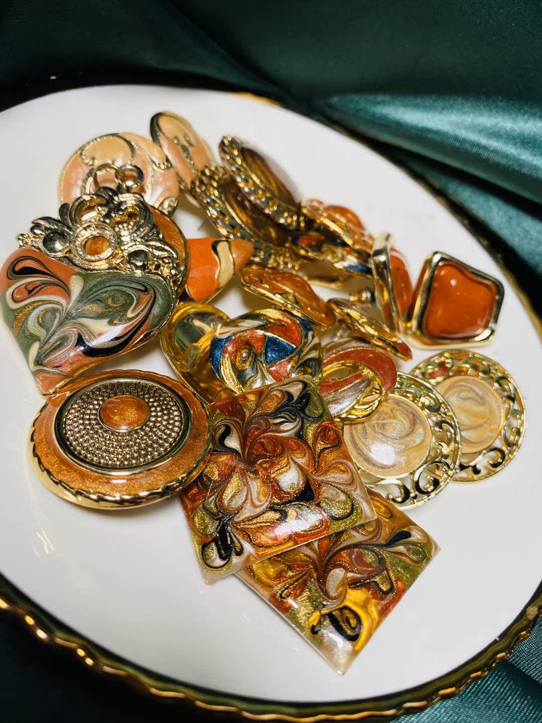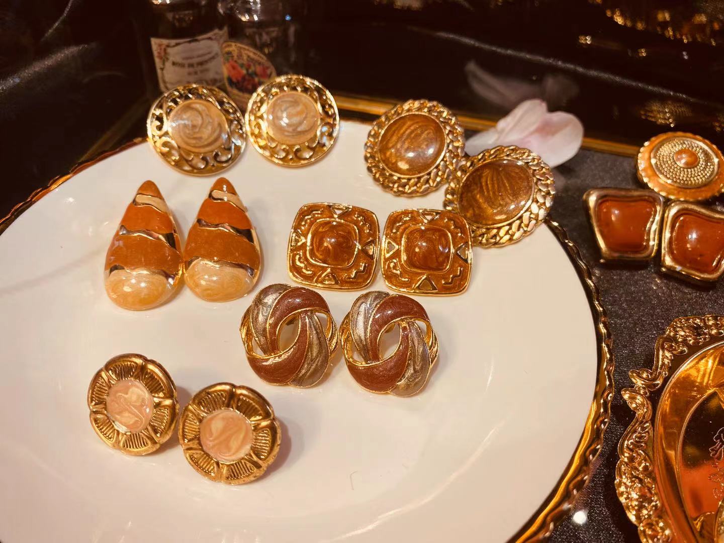 (Millionaires Bean) Vintage Earrings Atlantic Enamel Vintage Ancient With Trinket Ear Clips Europe (5)