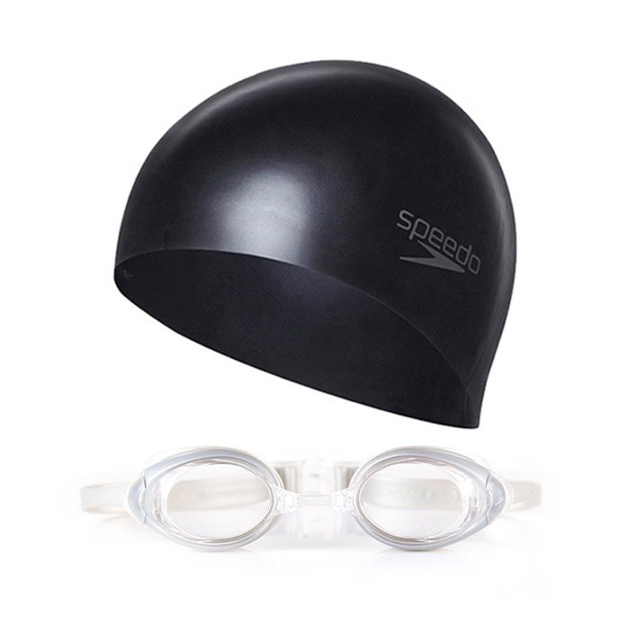 White transparent lens silica gel swimming cap + goggles bubble swimming cap + goggles