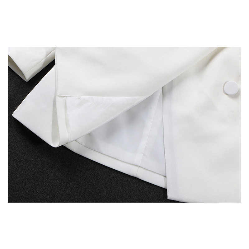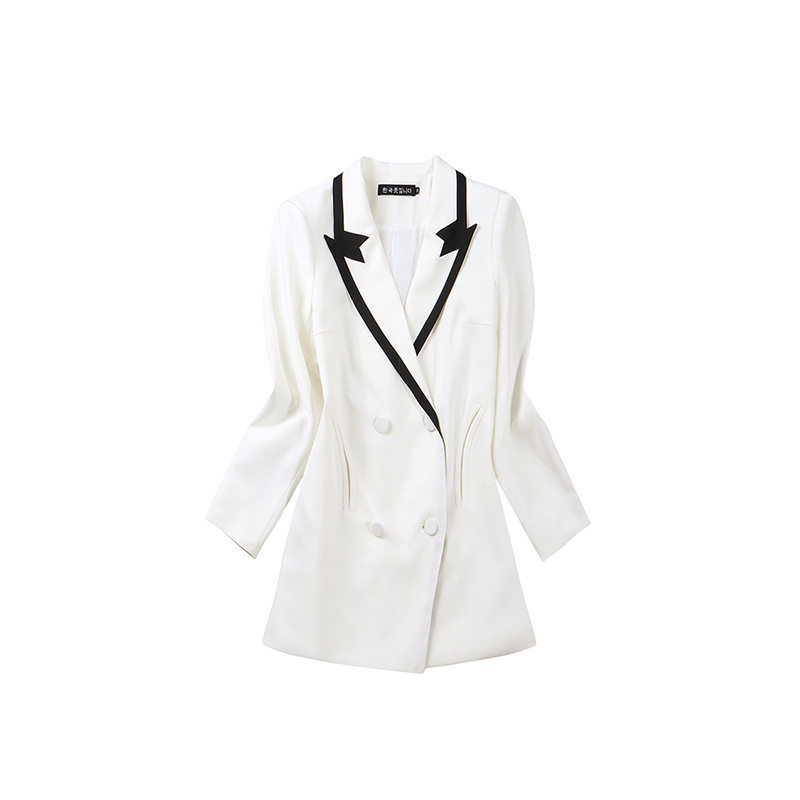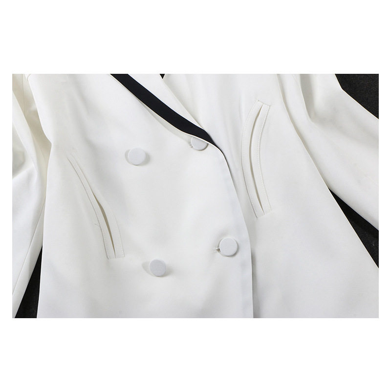 Yang Mi star with the same suit temperament double-breasted contrast color stitching jacket women's mid-length professional suit dress