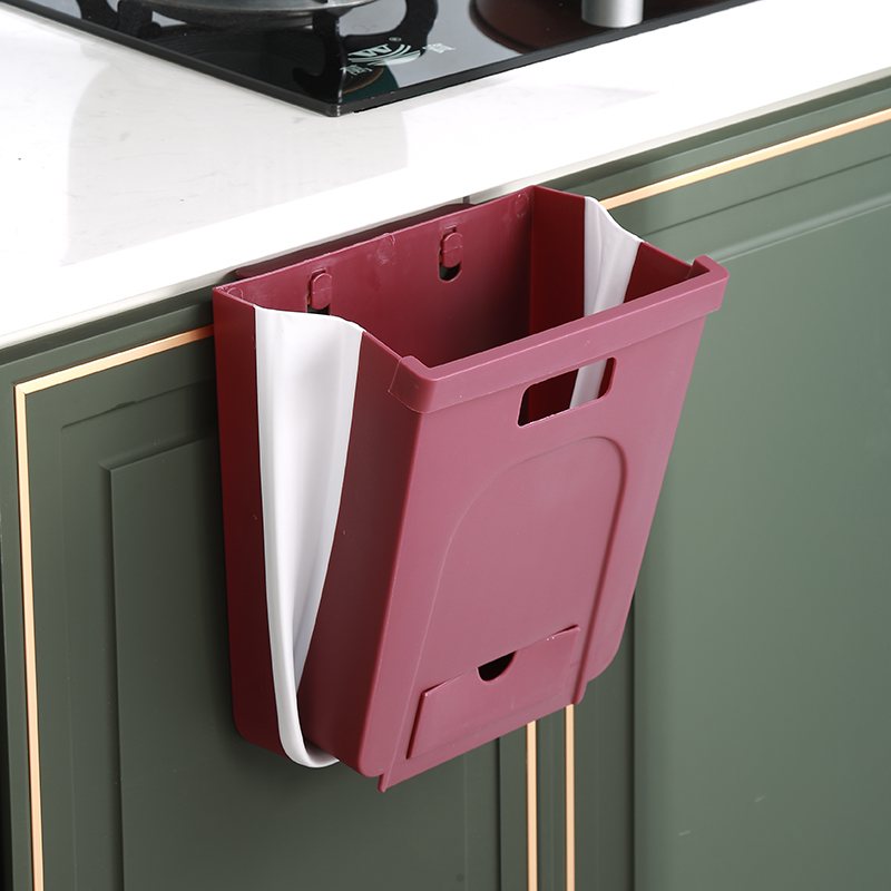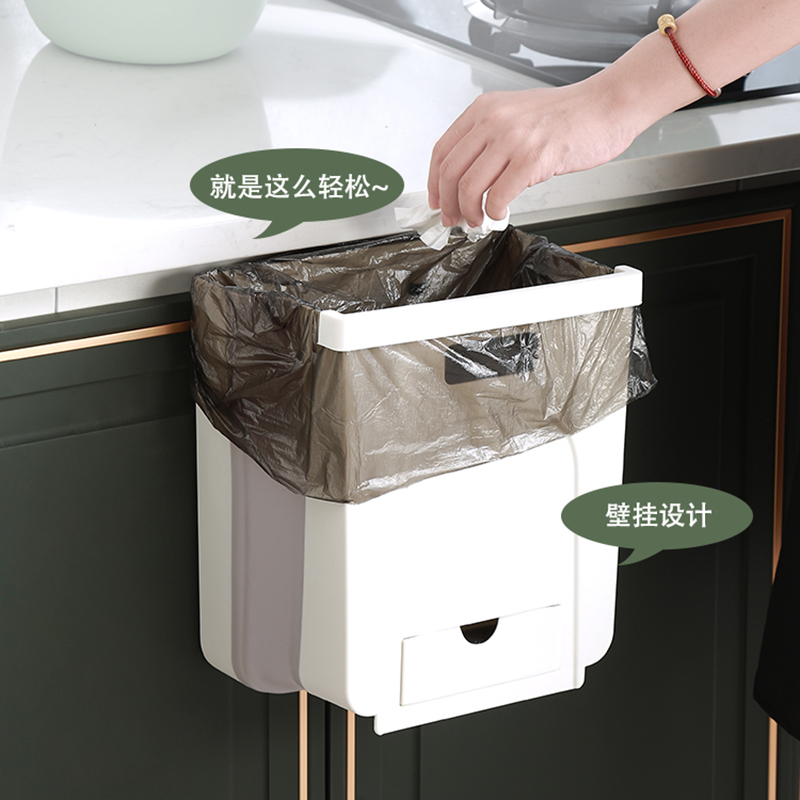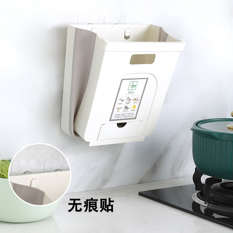 Kitchen special integrated cabinet door trash can hanging free hole folding basket hanging household food waste classification storage bucket