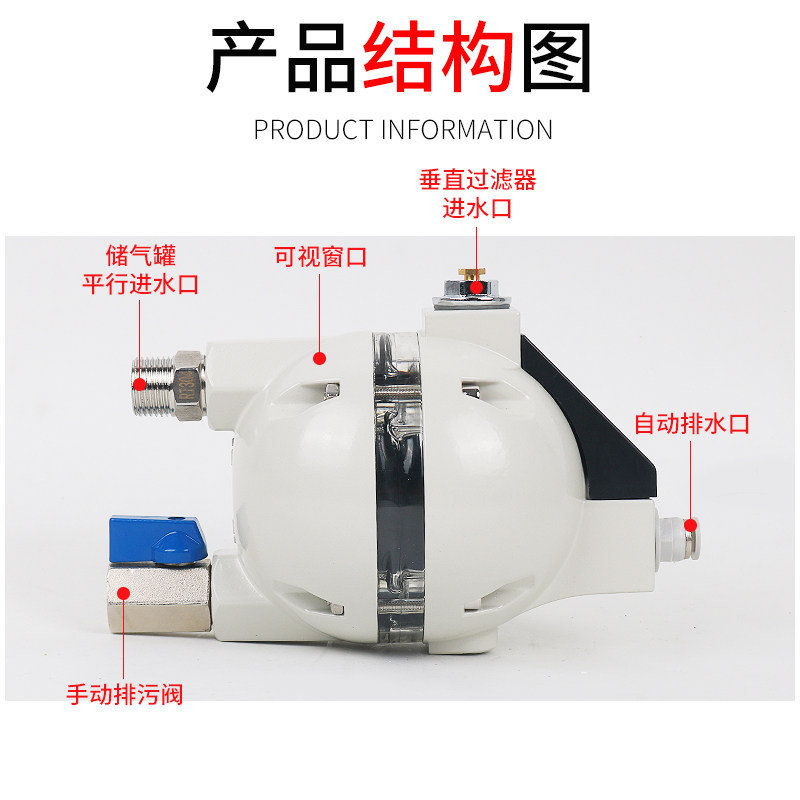 Special zero gas consumption Automatic drain valve ADTV-S spherical visual liquid level for air compressor air pump filter