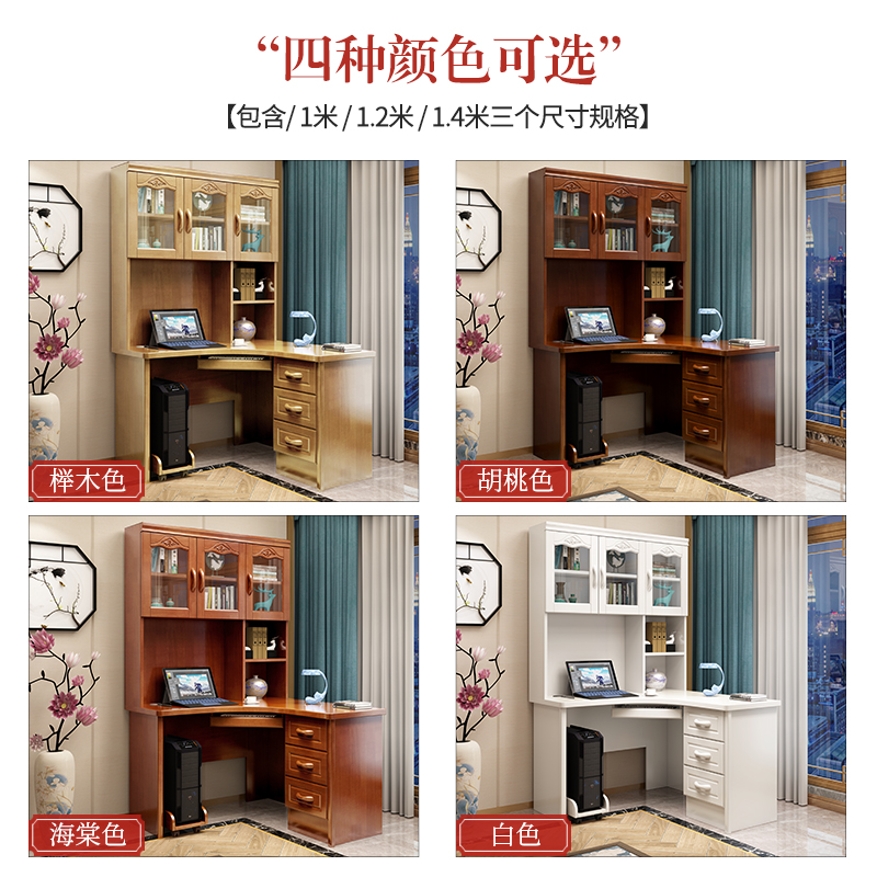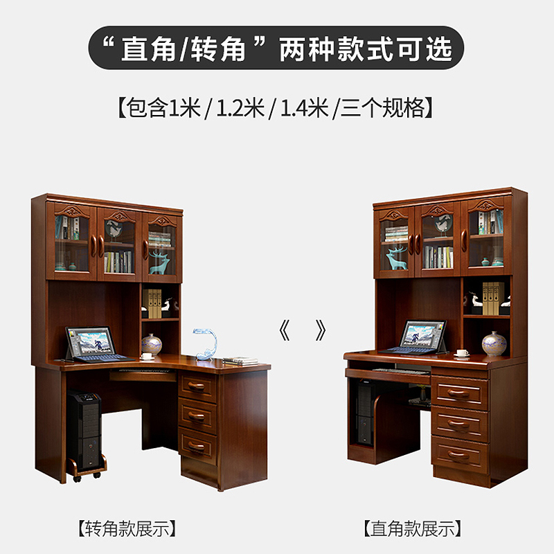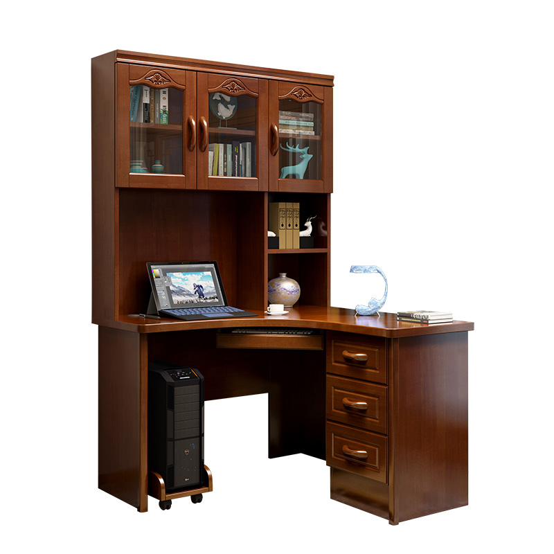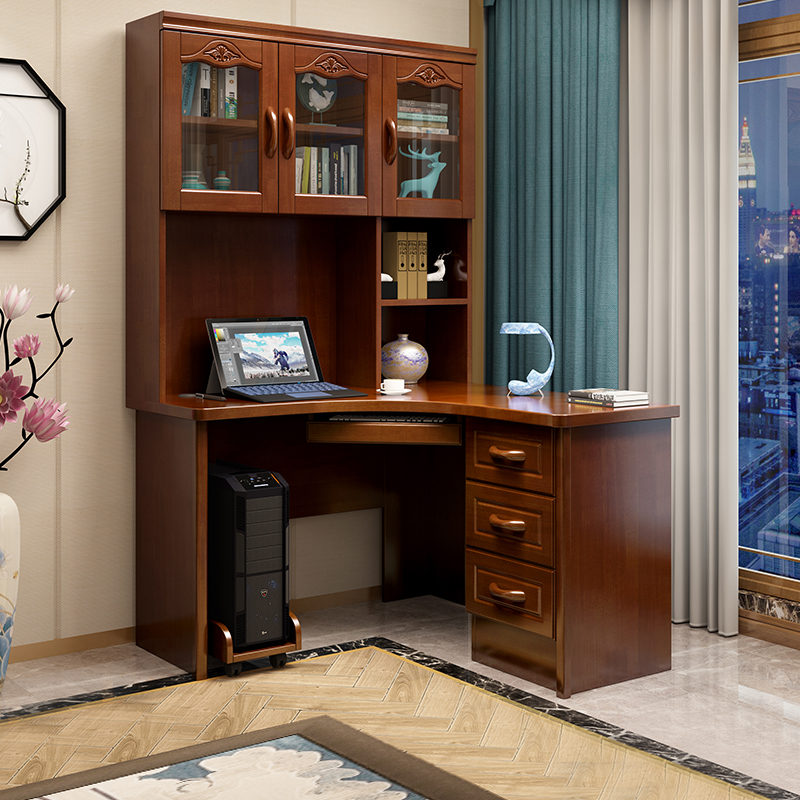 Solid Wood corner desk modern Chinese bookcase one bookshelf combination desk bedroom home corner computer desk