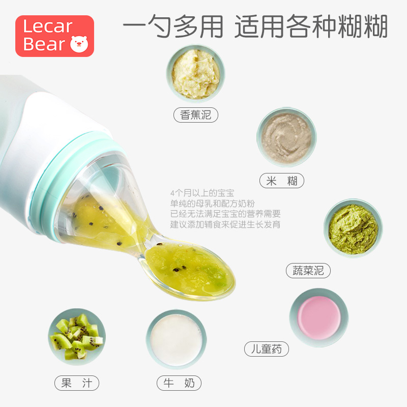 Rice milk bottle Baby spoon Silicone food box artifact Baby feeding rice flour insulation bowl spoon set Squeeze soft spoon