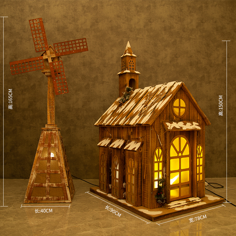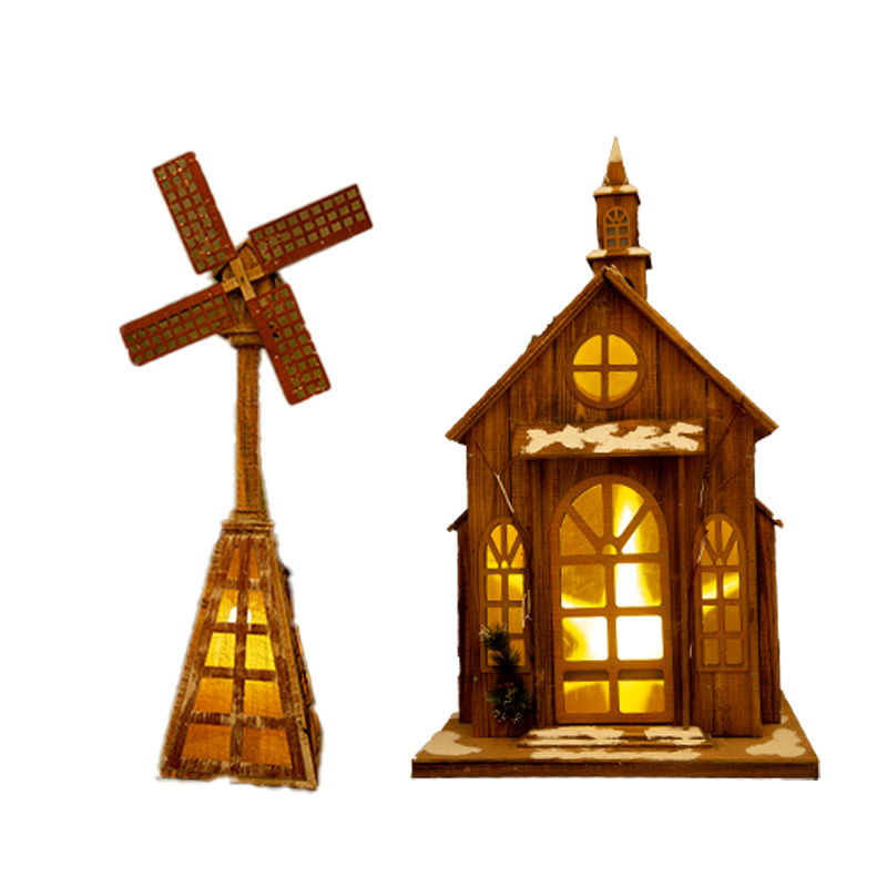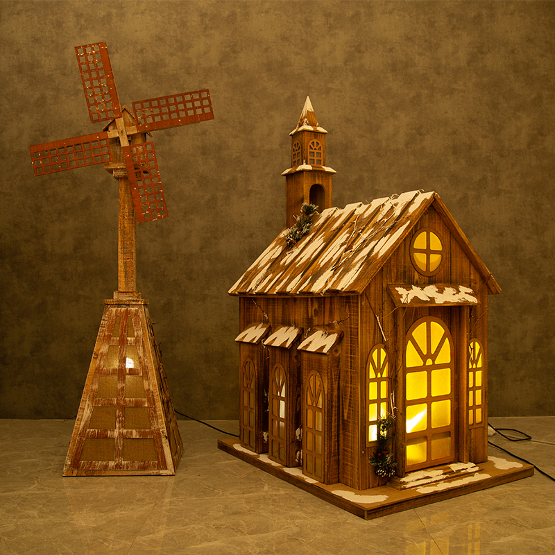 Wooden Windmill Wooden Snowhouse with wooden windmills