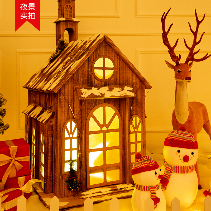 Christmas Christmas Decorations Snow House Christmas Tree Big Shine Hotel Old Color Wooden House Shop Window Scene Arrangement