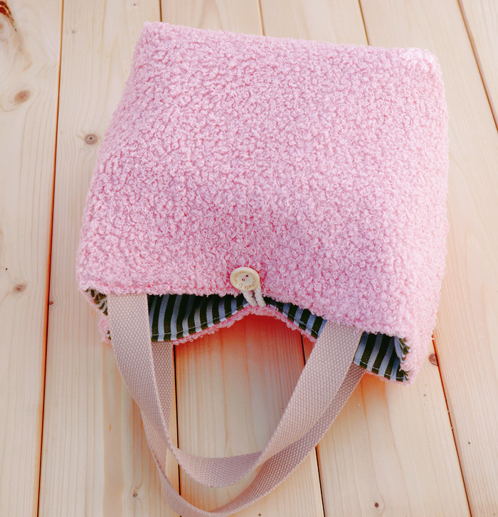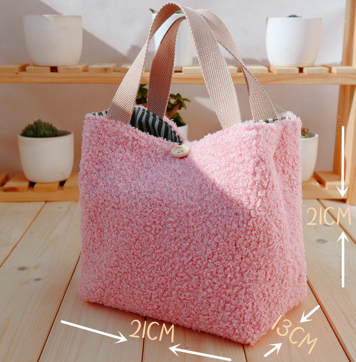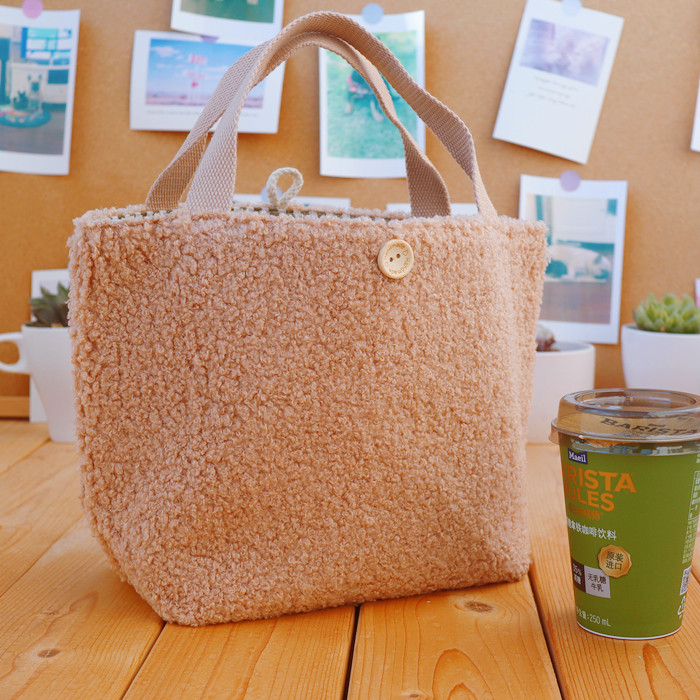 Day-style cute plush lamb wool lunchbox handbag Handbags Soft cute students with meal snacks large capacity