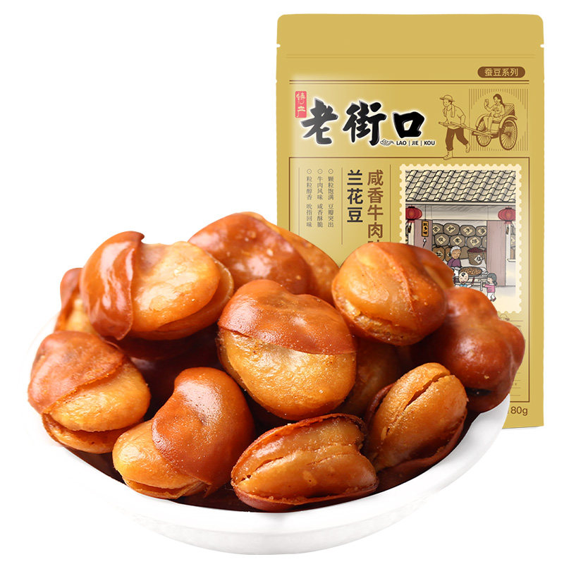 (66 optional 12) Laojiekou - broad bean 180g casual snack spicy broad bean roasted seeds and nuts bulk specialty
