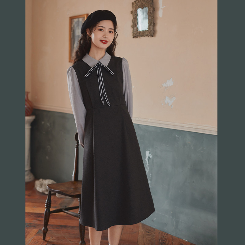 linjou Ling Jiu autumn dress long female temperament thin inside with academic style Joker slim waist long skirt