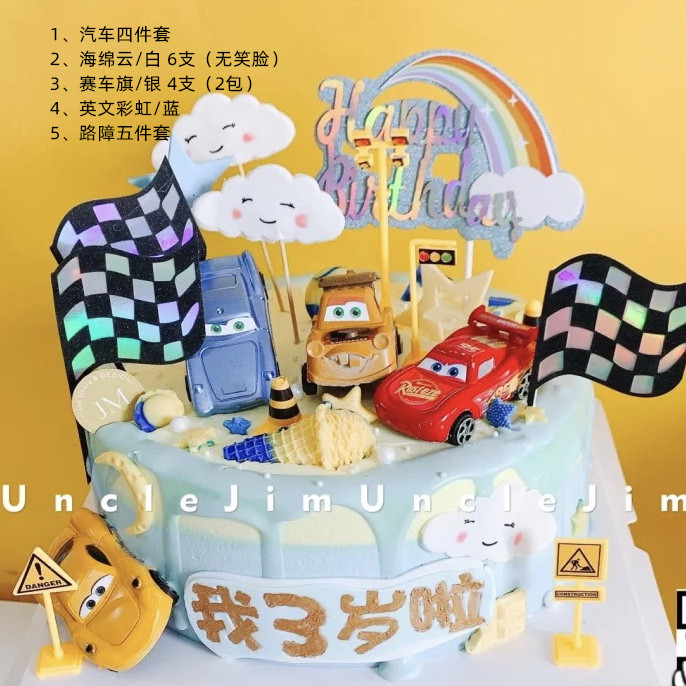 Pull Back Car Story Cake Decoration Ornament Large Small Size Set Porsche Children's Birthday Baking Ornament