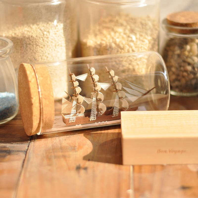 jeancard sailing glass bottle in view 3D radii Cardiy handmade paper sculpted material bag greeting card creative gift