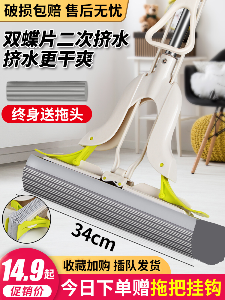 Sponge mop Home One drag net free hand washing and water suction lazy people drag dry and wet biking large glue cotton head Dorm
