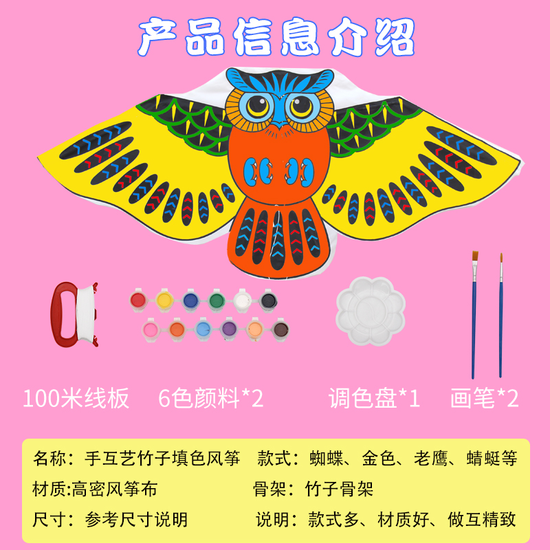 Children handmade DIY kite homemade material package cartoon painting filling graffiti handicraft bamboo painting painting kite