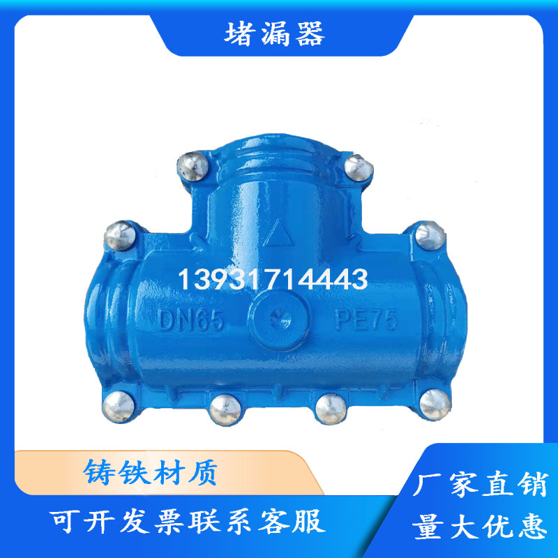 Huff section tee joint ductile iron repair plug loophole PE galvanized pipe hoop variable diameter tee plugging device