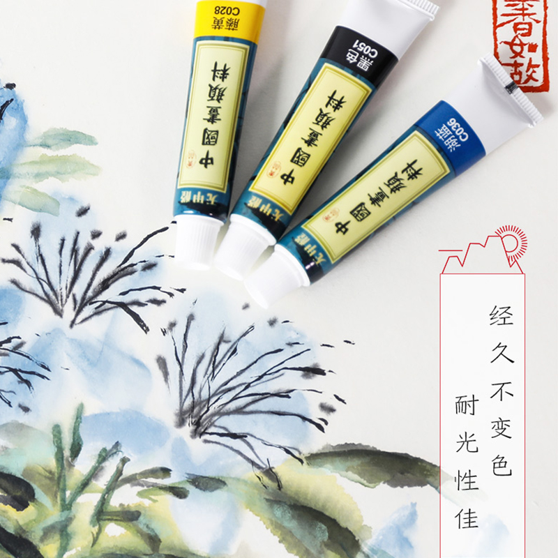 Rong Baozhai painting material Chinese painting green bamboo pigment single set ink painting meticulous painting Chinese painting brush beginner's introduction pigment 24 color 18 color 12 color adult Chinese painting mineral pigment