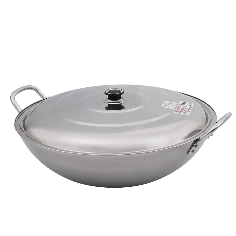Double ear iron pot stainless steel cauldron restaurant frying pan old-fashioned handmade round bottom thickened printing pot uncoated wrought iron frying
