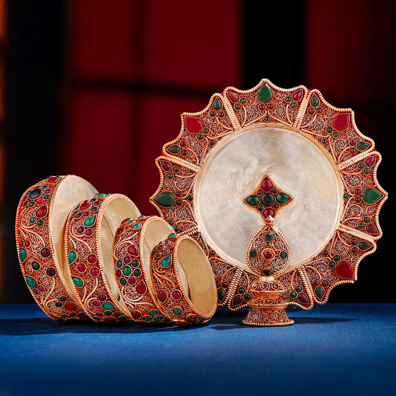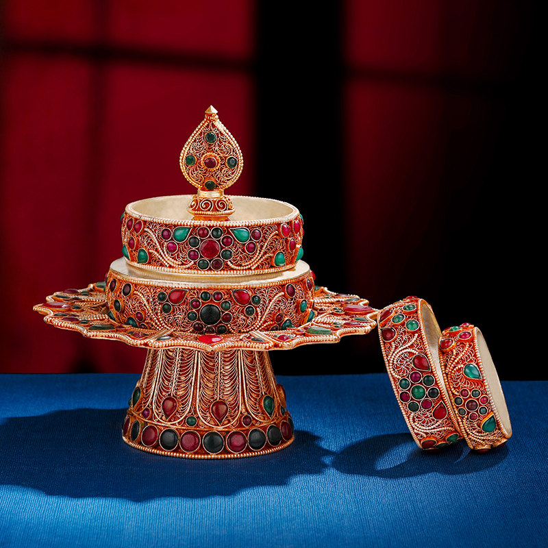 Nepal chokes Manza plate hand-set gems with Lotus pallets Tibetan Mancha Luo copper full set 10cm