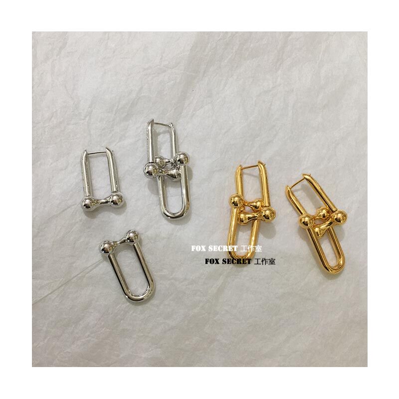 u-shaped horseshoe buckle chain short earrings, European and American ornaments plated 18K golden Ni Nickenbean the same large number detachable