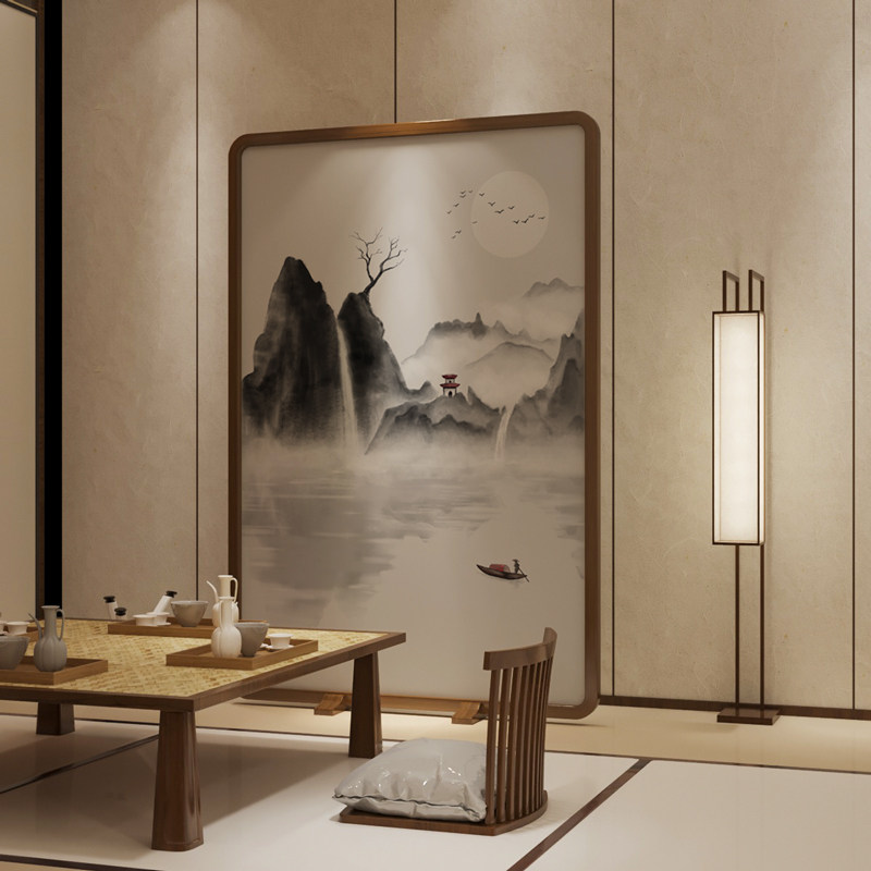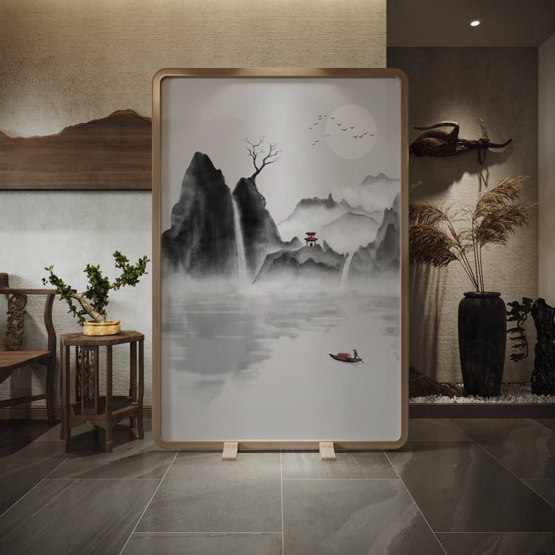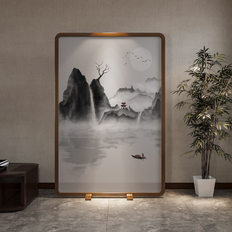 Modern Chinese-style screen partition Living room shielded mobile minimalist bedroom tea room office Xuanguan decoration solid wood seat screen