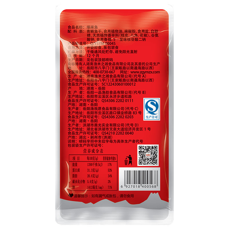 (RMB59 optional 12 pieces) Fisherman's Xiang Little Fish Sticks 12g * 6 Packs Fish Dry Spicy Notes Casual Snack Snack Snack