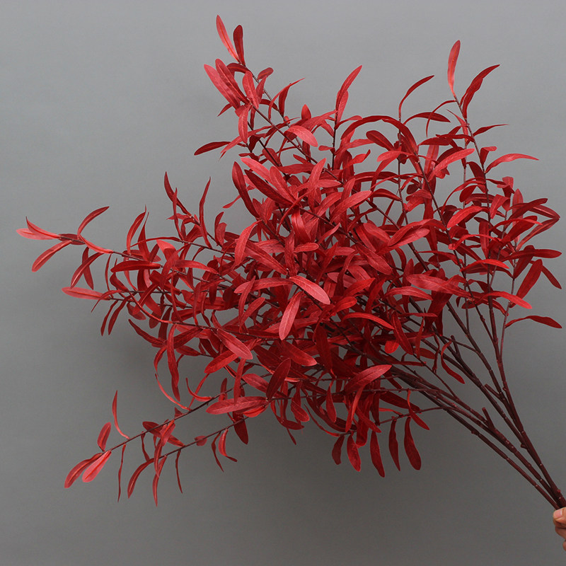 Wedding Ceremony Emulation Olive Branch Flower Arrangement Green Leaf Sensual Decoration Flower Material Hotel Wedding Hall Suspended Ceiling Decoration Red Olive Leaf-Taobao