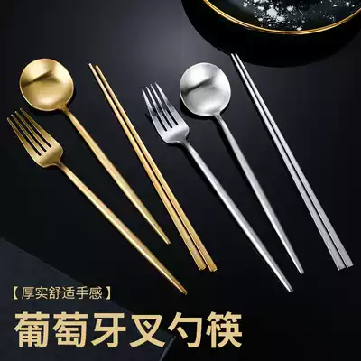 304 stainless steel chopsticks spoon tableware set box three-piece titanium plated portable tableware student storage single