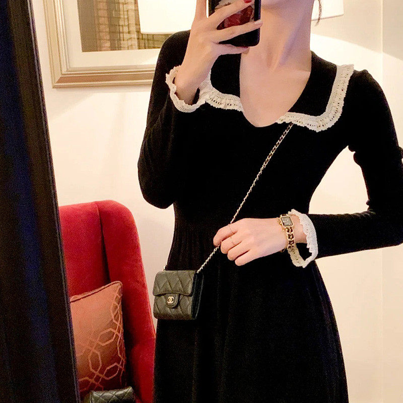 Disc Yue Closets Waist Knit Ocean Dress Women 2020 Autumn Winter Inner hitch bottom Conspiculy Slim Fit Long Version Long Sleeve Dress