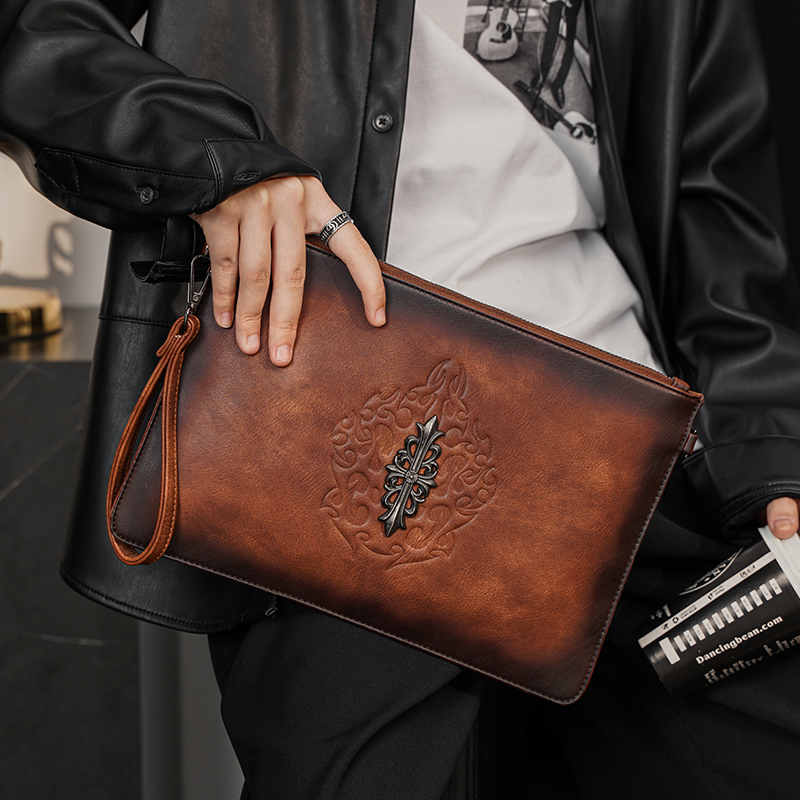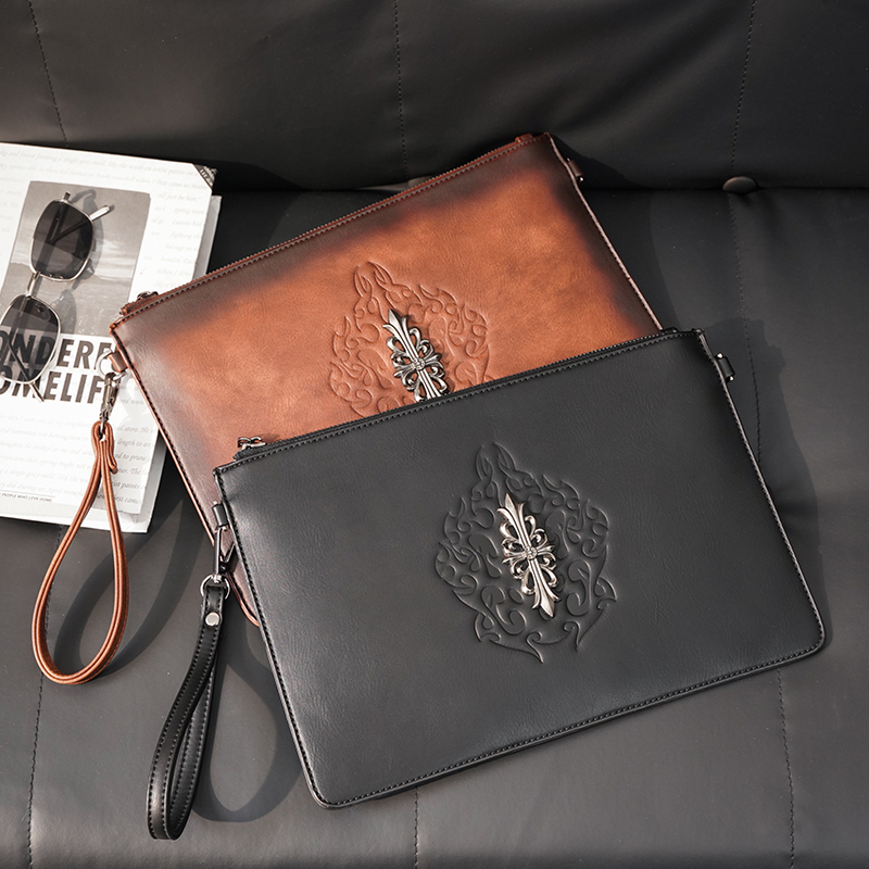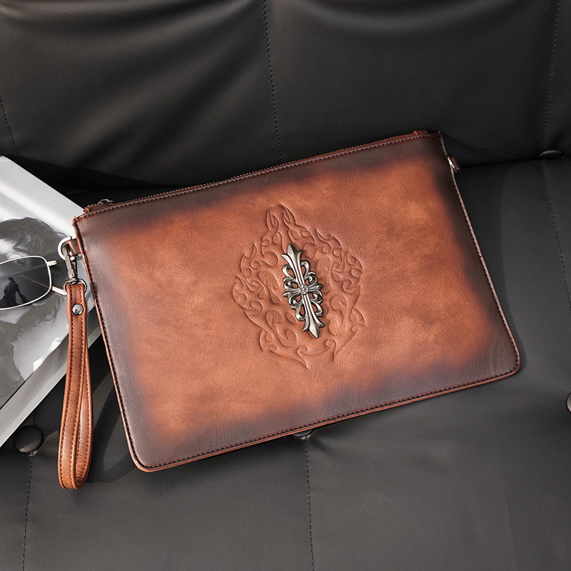 Vintage fashion men's clutch bag horizontal leather riveted wrist bag Korean version men's bag clutch bag ipad envelope bag